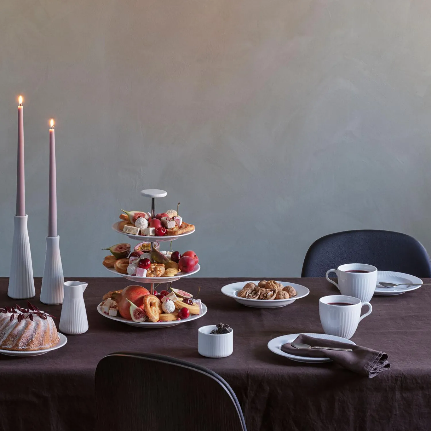 Hvor Legio’s formsprog er absolut minimalistisk, er Legio Nova designet med riller, der raffineret danner rammen om maden. Eva Trio er sponsor af det danske kokkelandshold, og i designprocessen er der fundet inspiration i at se deres madkunst, og den omhu de lægger i deres håndværk. Derfor indrammes tallerkenens midte af elegante riller der fremhæver anretningen. Legio Nova er ligesom Legio porcelæn af høj kvalitet, der både tåler ovn, mikroovn og fryser. Der er 10 års porcelænsgaranti på stellet, og så er det ikke mindst testet af det danske kokkelandshold, som anbefaler Legio Nova.