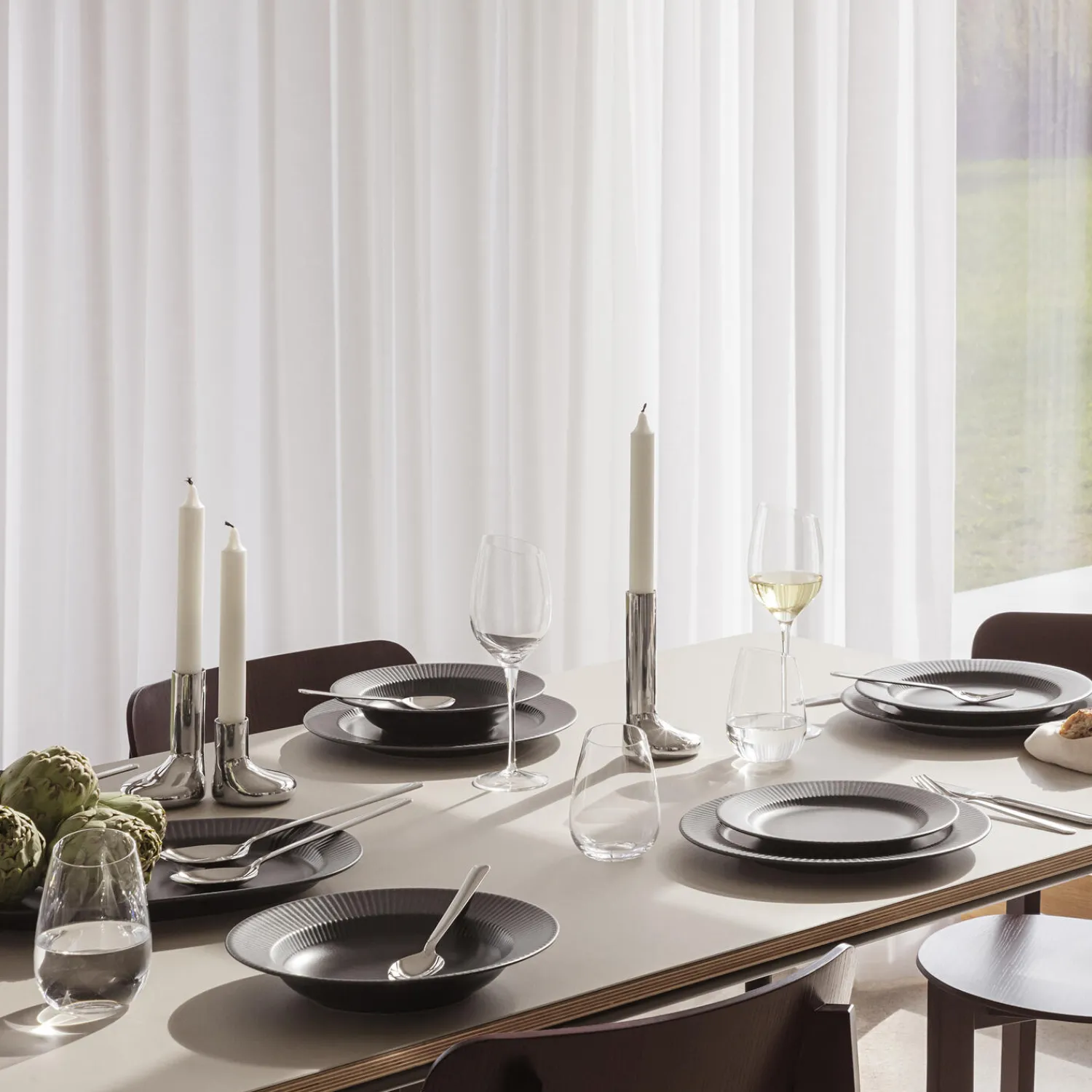 Dæk et smukt middagsbord med de elegante middagstallerkener, hvis rillede design indrammer og fremhæver maden. Legio Nova Black er en genfortolkning af det populære Legio Nova stel med en matsort finish inspireret af det rustikke, nordiske køkken. Med sit mørke farveunivers og de karakteristiske riller tilføjer stellet en spændende kontrast og dybde til enhver bordopdækning. Stentøjet er af højeste kvalitet og kan tåle alt fra ovn og fryser til mikrobølgeovn og opvaskemaskine. Legio Nova stellet er dækket af en 10-års garanti (scan QR-kode for mere information).