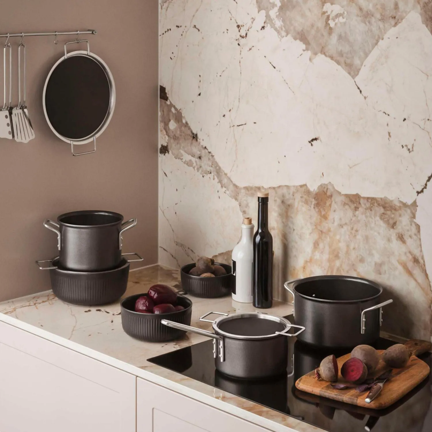 Skålen danner elegant ramme om enhver anretning. Den pynter og er praktisk på det store middagsbord såvel som på køkkenbordet i dagligdagen. Brug den f.eks. til yoghurt, salat eller som slikskål. Legio Nova Black er en genfortolkning af det populære Legio Nova stel med en matsort finish inspireret af det rustikke, nordiske køkken. Med sit mørke farveunivers og de karakteristiske riller tilføjer stellet en spændende kontrast og dybde til enhver bordopdækning. Stentøjet er af højeste kvalitet og kan tåle alt fra ovn og fryser til mikrobølgeovn og opvaskemaskine. Legio Nova stellet er dækket af en 10-års garanti (scan QR-kode for mere information).
