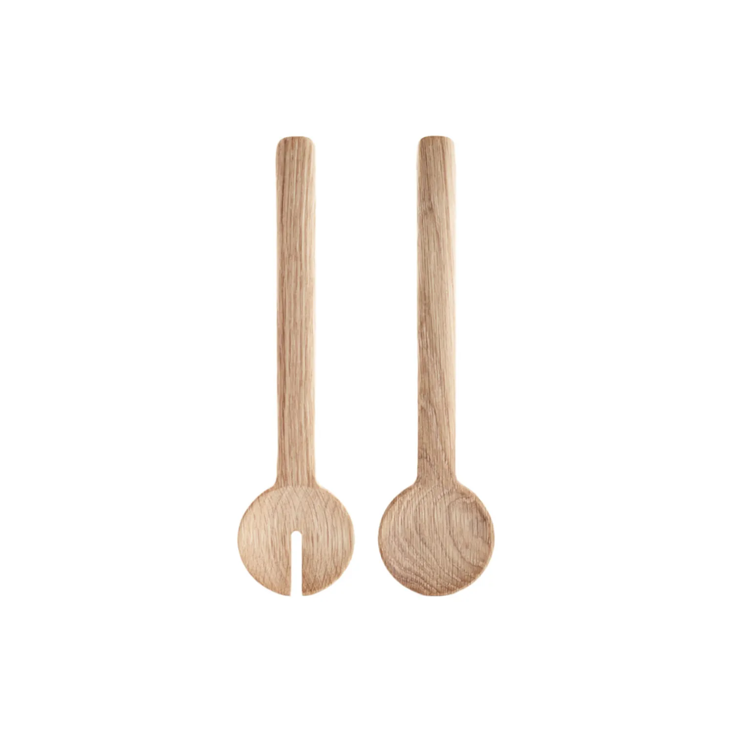 Salatsæt fra Eva Trio er både elegant og råt på samme tid. Det er skåret i eg, som giver hvert enkelt salatbestik et helt unikt og nordisk udseende. Sættet er designet med bløde former, som sikrer et godt og komfortabelt greb. Salatsættet bliver kun pænere af at blive brugt, men kan med fordel behandles med lidt olie ind imellem for længere holdbarhed. Til hverdag rengøres salatsættet nemt med varmt vand og sæbe.