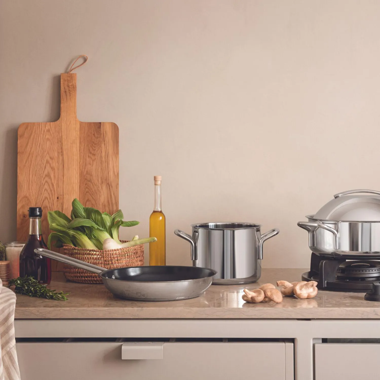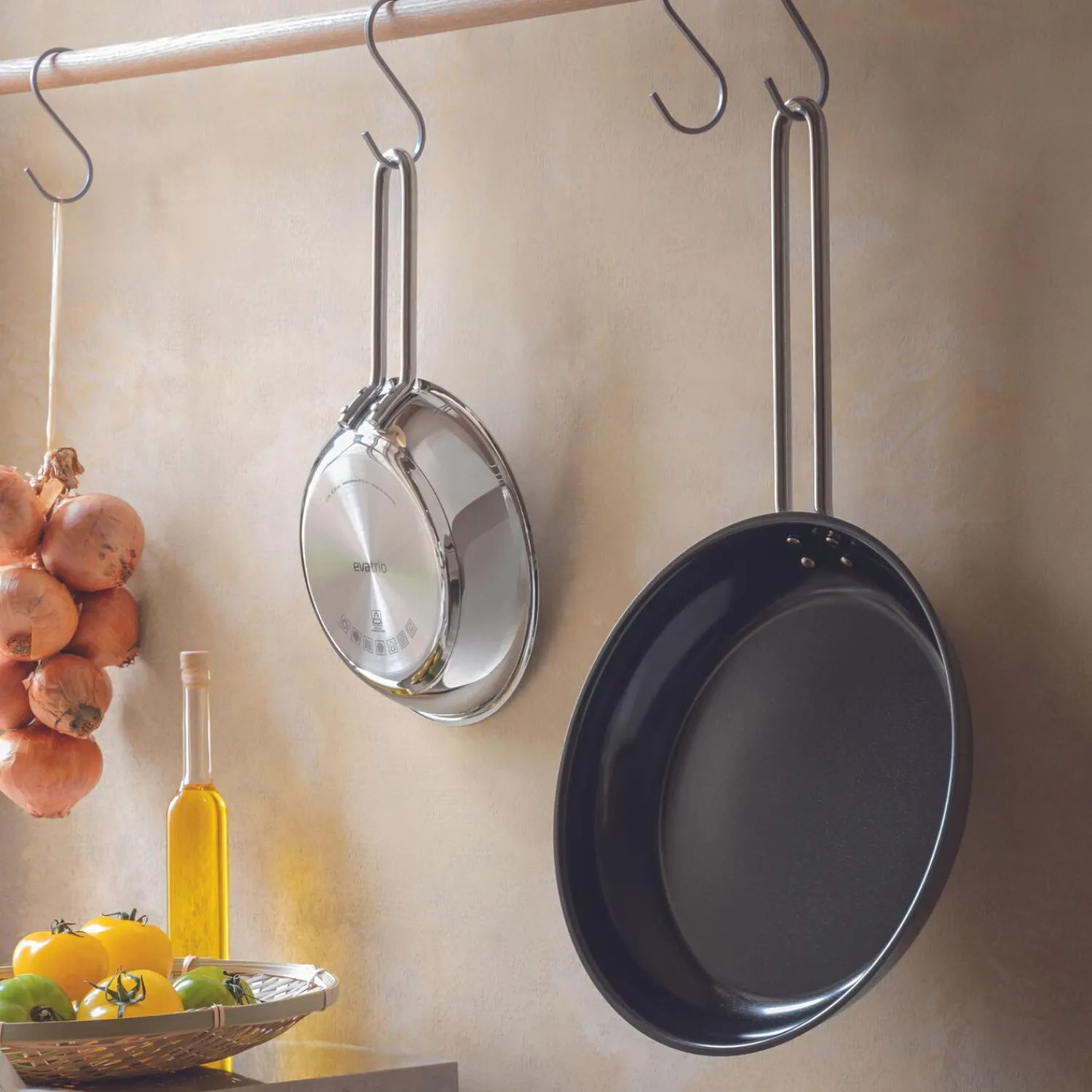 En pande på 24 cm er en super all-round størrelse og kan rumme de fleste madlavningsprojekter for en husstand på 1-3 personer. Derudover er den heller ikke større end at der er plads til den på de fleste komfurer. De klassiske Eva Trio stegepander er i Steel line serien blevet forsynet med kraftigere greb, og ny stål er erstattet med 90 % genanvendt stål i produktets krop – et mere ansvarligt valg i en verden, der er knap på ressourcer. Materialet har samme høje kvalitet som ny stål og giver grej, der kan tåle at blive brugt. Det gør kogegrejet optimalt modstandsdygtigt over for rust, giver stor slidstyrke og sikrer nem rengøring. Stegepanden har keramisk belægning på indersiden – et meget stærkt materiale, der kan tåle høje temperaturer, og som ikke så let tager imod ridser. Det giver en større robusthed i det daglige og længere holdbarhed i det lange løb. Den keramiske belægning tåler temperaturer helt op til 400°C.
