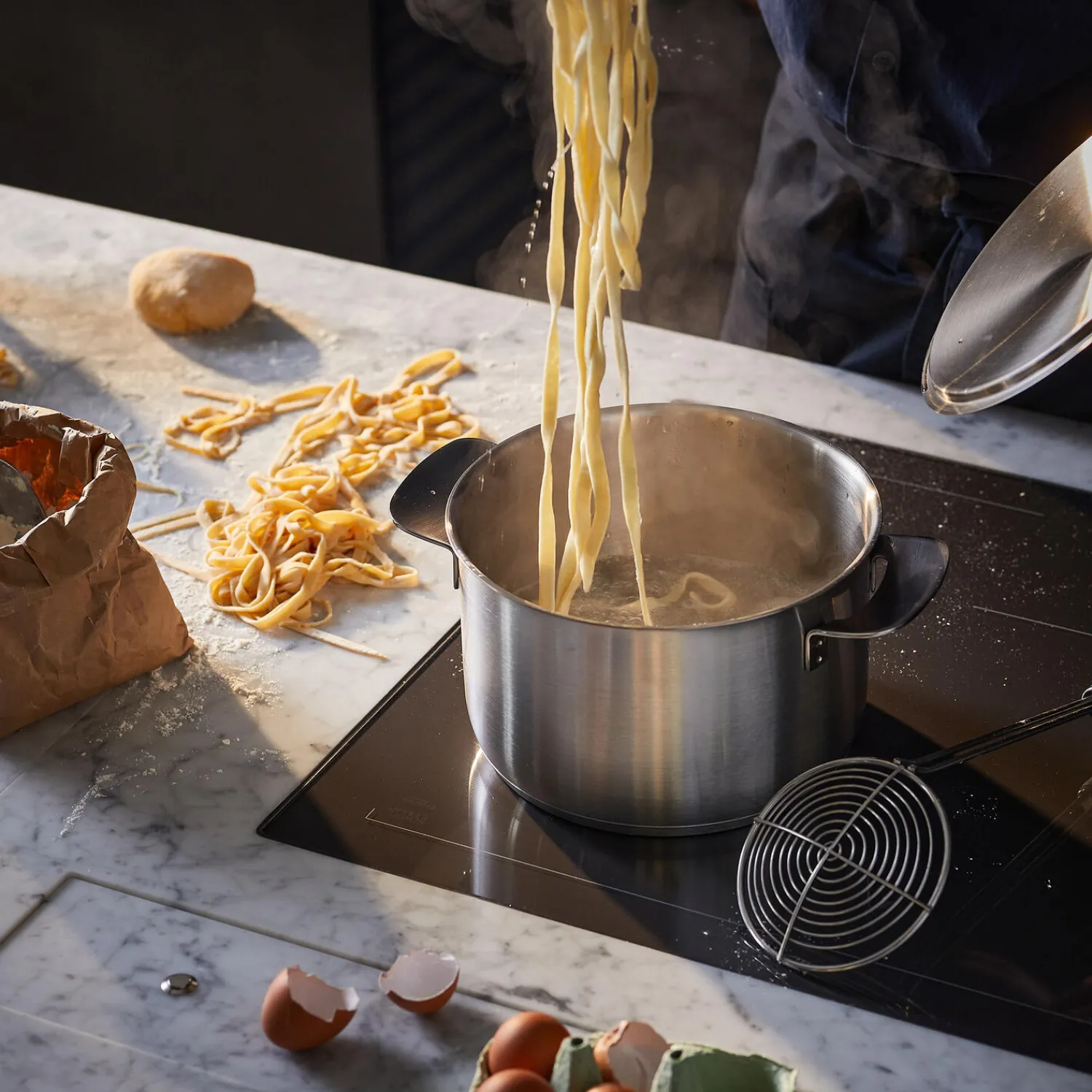 Fiskars All Steel Large gryde 5L giver madlavningen et løft med genanvendt rustfrit stål i høj kvalitet, som minimerer affaldsmængden. Sauteusen er fremstillet af 90 % genanvendt stål med 92 % lavere CO2 udledning end gennemsnittet i branchen og er utrolig holdbar. Takket være den tykke 3-lags bund, der er optimeret til effektiv og jævn varmefordeling på alle typer kogezoner, er du sikker på at opnå perfekte stegeresultater. Den er også udstyret med en indvendig måleangivelse, sikre, ovnfaste håndtag og låg med dampventil. Pandens tidløse, simple udtryk passer godt ind i det moderne, bæredygtige køkken og gør hvert måltid til en god oplevelse. Fremstillet i Finland med bæredygtige processer og produktionsmetoder.