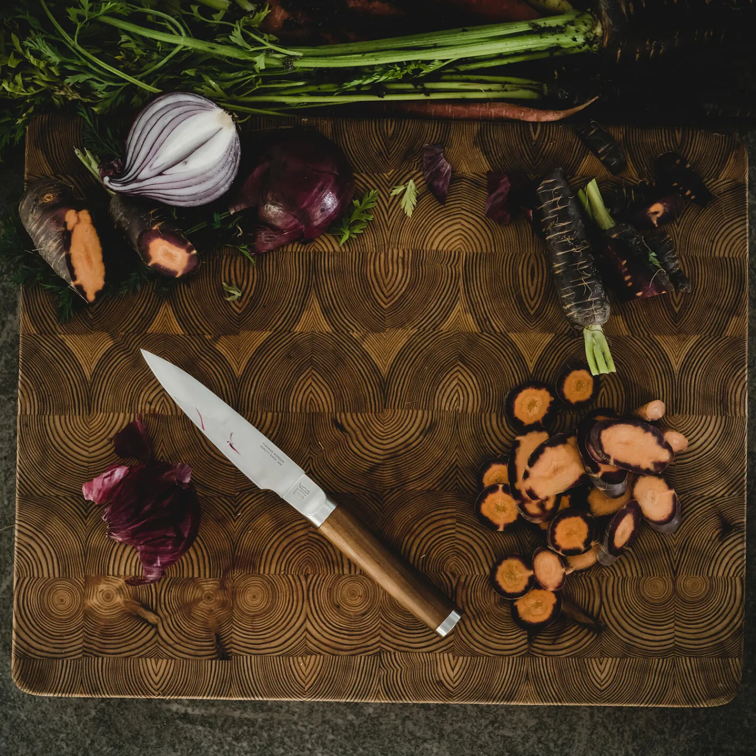 Fiskars Norden-knivene er lavet af premium materialer. Norden grøntsagskniv er ideel til at skære frugt og grøntsager. Knivbladet er lavet af tysk karbonstål af højeste kvalitet, hvilket sikrer en overlegen funktionalitet og langvarig skarphed. Derudover er knivbladet slebet med den optimale 26˚ vinkel, som yderligere understøtter knivbladets fortræffelige skarphed. Håndtaget er fremstillet af varmebehandlet birketræ, hvilket gør kniven meget behagelig i hånden og naturligt smuk. Knivbladet har en hårdhed på HRC 56. Vi anbefaler at vaske dine knive i hånden. Det varmebehandlede håndtag I bøgetræ på Fiskars Norden knivene giver et æstetisk Nordisk udtryk. De naturlige variationer i farve og tone tilfører knivene autensitet og stil. Produceret i Finland. Unikt, fra naturens side.