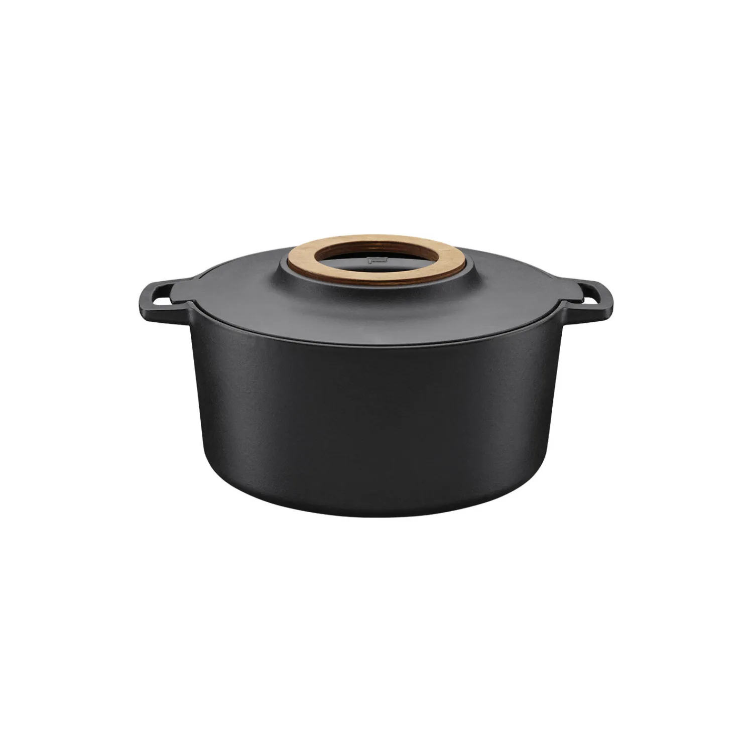 Fiskars Norden er en serie af køkkengrej i støbejern. Serien er en innovativ kombination af premium materialer, som tåler høje temperaturer, og har overlegne non-stick egenskaber. Støbejernsgryden er inspireret af den nordiske natur – og traditioner, og vil med sine unikke egenskaber hjælpe med at frembringe kraftige smage til dine retter. Støbejern holder længe på varmen, og er perfekt til simremad. Den unikke Thermium™ mineralbehandling på overfladen af støbejernet giver gryden overlegne non-stick egenskaber selv ved høje temperaturer. Mineralbehandlingen sikrer også, at støbejernet ikke ruster eller kræver pleje med olie. Aftagelig bordskåner på låget i finsk birketræ.