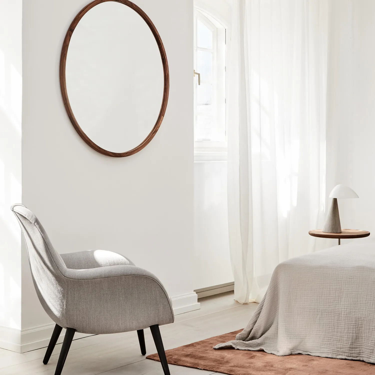 Med fokus på materialer, håndværk og sublim æstetisk, har danske OEO Studio skabt en serie spejle indrammet af massivt træ. Rammen af valnøddetræ giver et varmt og roligt udtryk. Træets årer er synlige og skaber et flot organisk mønster.