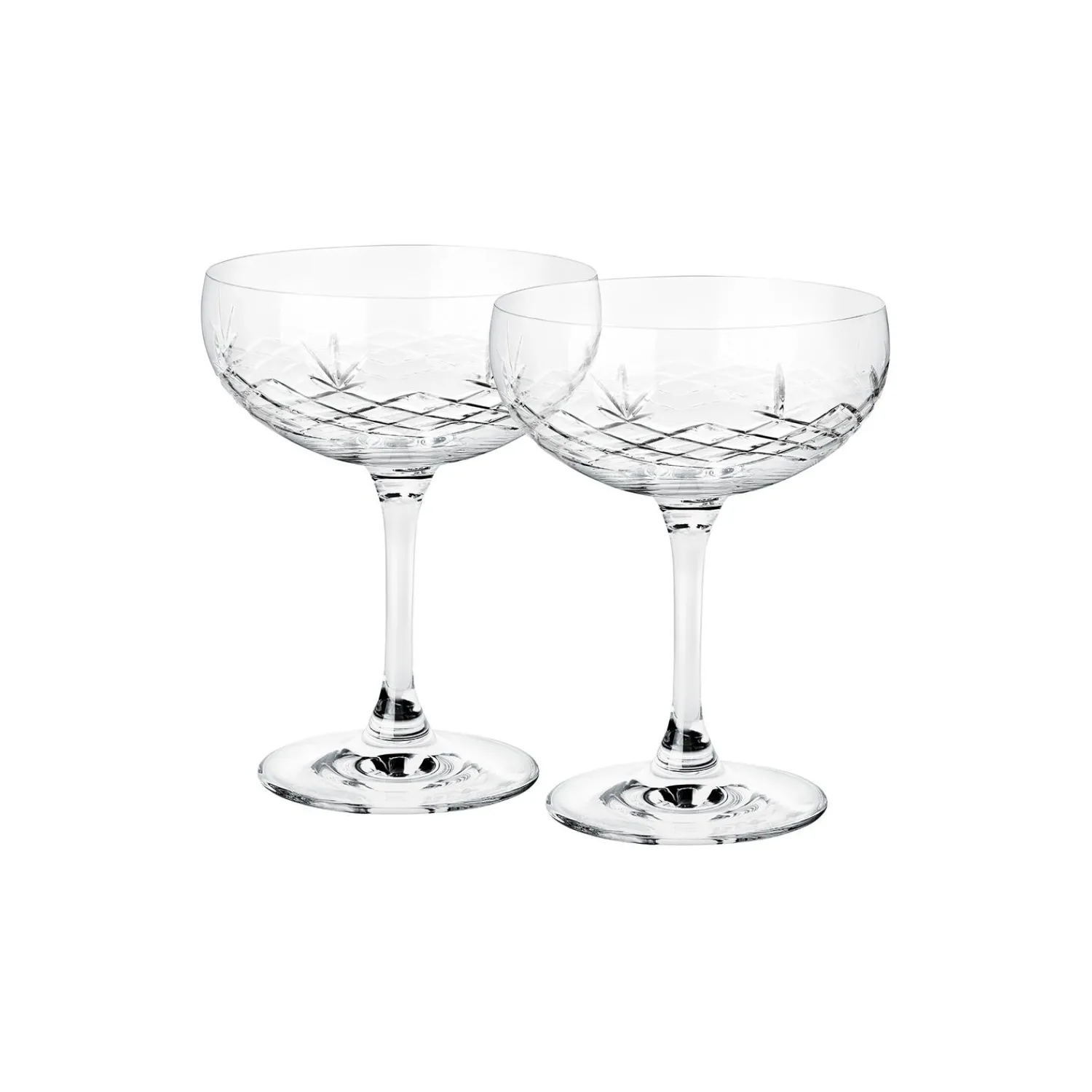 De smukkeste Crispy Gatsby champagneskåle i krystalglas, der egner sig til alt lige fra champagne, til en Espresso Martini eller som et festligt indslag på morgenbordet. Crispy glassene fra Frederik Bagger er diamantslebet. Den bæredygtige glasmasse bidrager til en unik klarhed og kvalitet. Glassene tåler opvaskemaskine samt temperaturer fra -25 grader op til 180 grader.