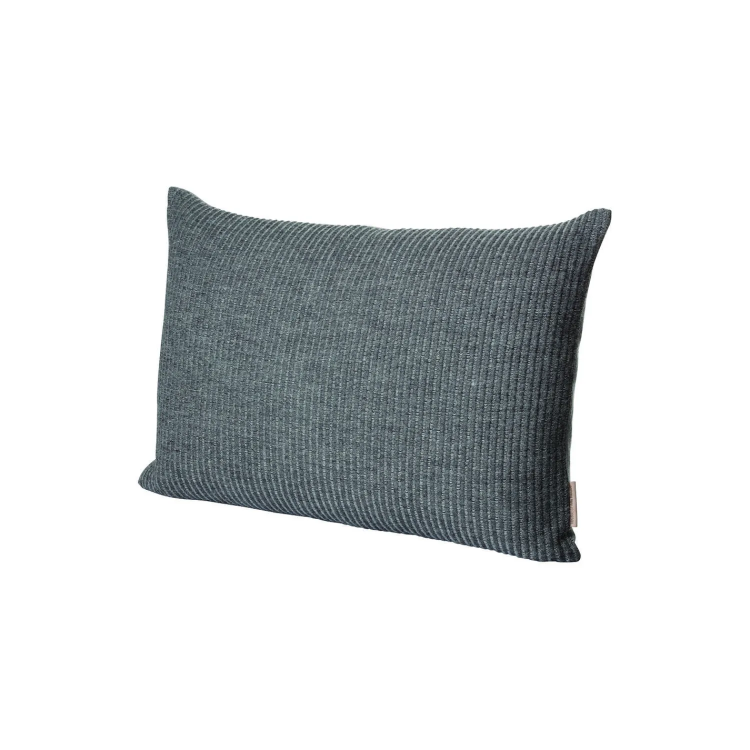 Aiayu pude med forside i vævet boliviansk uld og bagside i hør fra Fritz Hansen. Inderpude med fyld af andefjer/dun. Farve: antracite. Mål: 40×60 cm. Design: Aiayu.