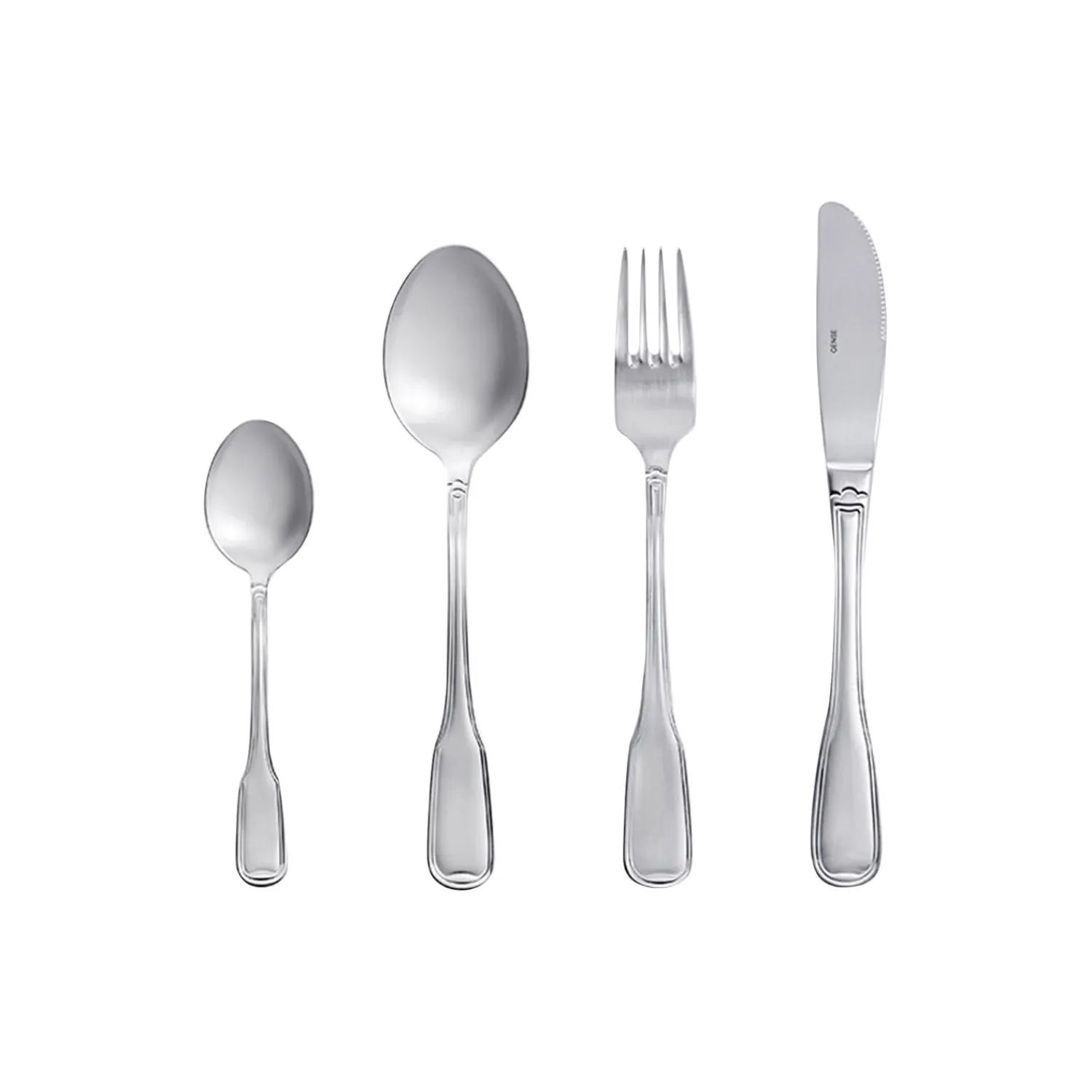 Gense Attaché står for et rent design inspireret af barokken. Bestikket har en traditionel stil skabt med en dobbeltrillet kant. Tåler opvaskemaskine.