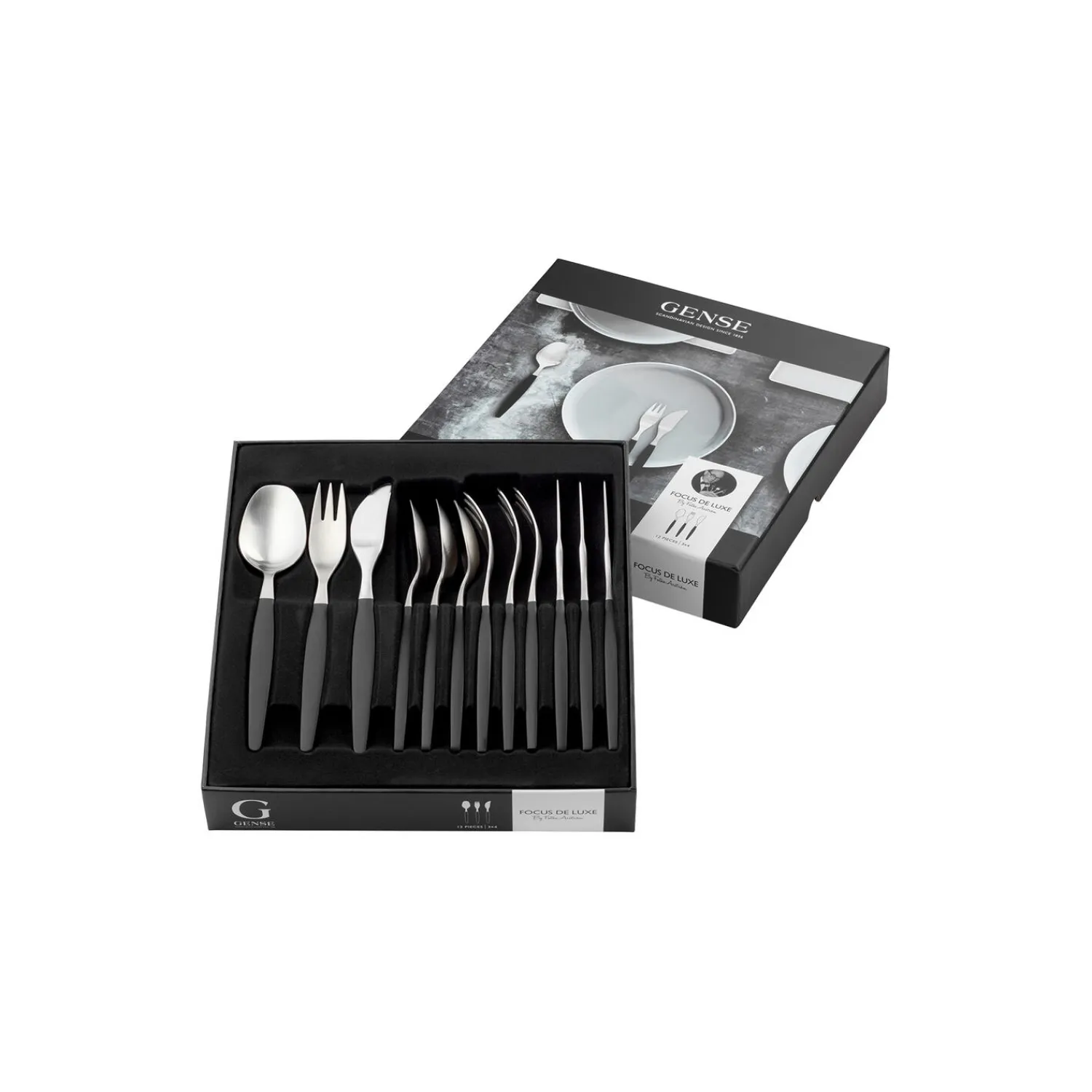 Folke Arström designede Focus de Luxe for Gense allerede i 1955. I dag er Focus de Luxe en stilfuld retroklassiker med et tidløst og funktionelt design. Bestikket har et modernistisk design for sin tid med sit trekantede knivblad, afrundede gaffel og smalle ske. Perfekt til alle, der er interesserede i design og en forkærlighed for retro-perler. Focus de Luxe har været et samlerobjekt i mange år. Bestikket er blevet anerkendt af “New York Times” som et af de “100 bedst designede produkter i moderne tid”. De sorte håndtag, der oprindeligt var fremstillet af nylon, er nu lavet af hård POM-plast.