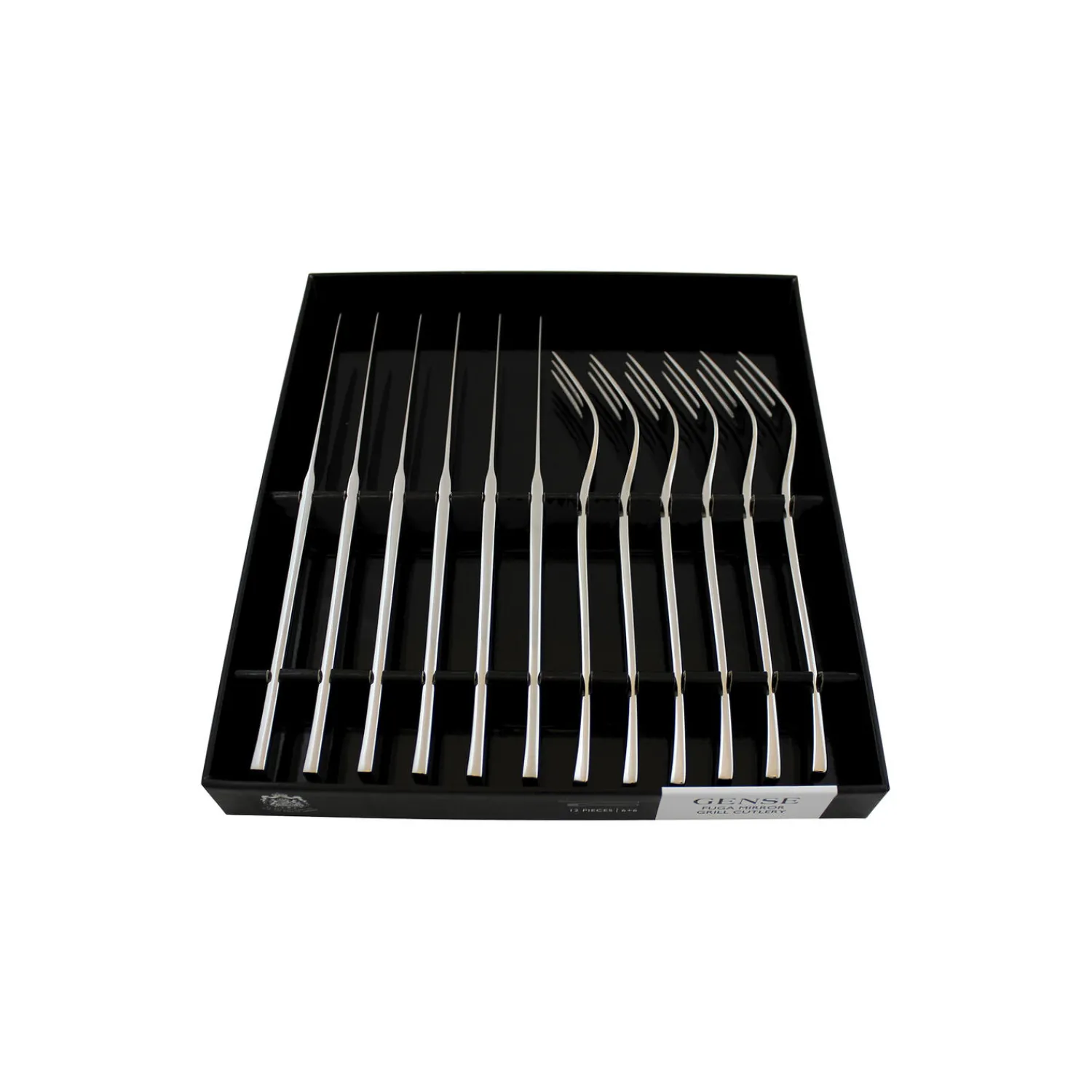 6 sæt kniv og gaffel. Genses bestik Fuga er ideelt til hverdagslivet såvel som til festlige lejligheder. Fuga har et klassisk design med blødt afrundede linjer, der hviler behageligt i hånden. Tias Eckhoff formgav det ikoniske bestik i 1962, der i sit design formidler klarhed og præcision, men med et subtilt udtryk.