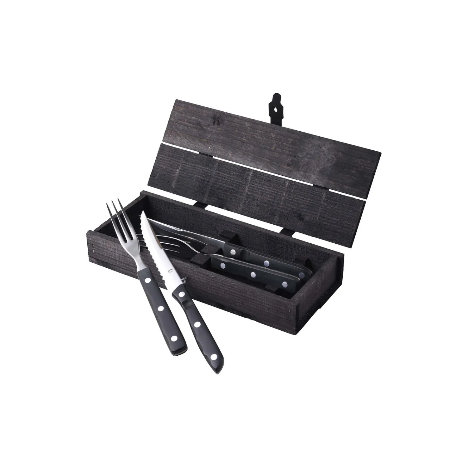 Old Farmer Black er et meget robust og smukt grillbestik, der er perfekt til den lækre steak og andet grillkød såvel som den friske sommersalat. Old Farmer Black kommer i en rustik trækasse, der gør bestiksættet til en fremragende og smuk gave. Fremstillet af matpoleret rustfrit stål med skaft i POM-plast i høj kvalitet.