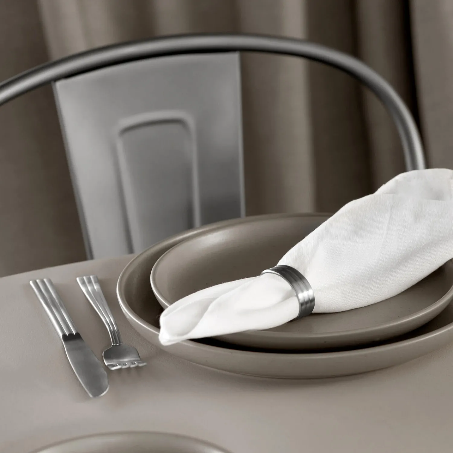 4 stk. servietringe, dia. 4,3 cm, højde 3,2 cm.Thebe har en klassisk og tidløs form, der gør bestikket lige så smukt og nutidigt i dag, som da det blev skabt i 1944. Thebe var Genses første moderne bestikserie i rustfrit stål og er inspireret af den overdådige egyptiske stil med stramme og stilfulde linjer. Thebe anno 2024 er tilpasset samtiden. Bestikket er længere og i større harmoni med nutiden – længden på de enkelte bestikdele er øget med ca. 10 %, og materialet er 91 % genanvendt rustfrit stål.Tåler opvaskemaskine.DESIGNED TO MAKE YOU PROUD