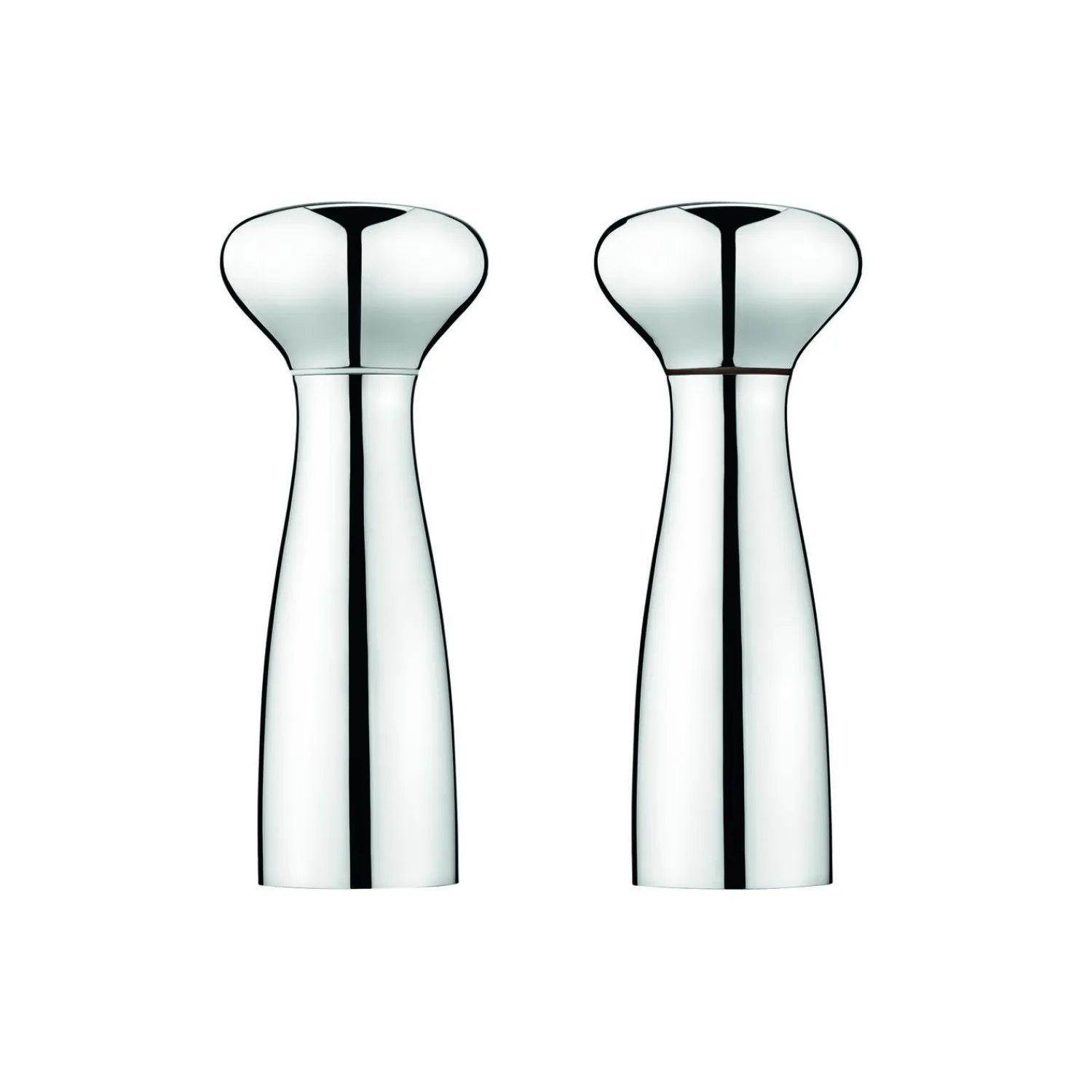 Dette smukke salt og peber-sæt er et regulært stilstudie i underspillet minimalisme. Al pynt er fjernet, så det der står tilbage er en ren organisk form i højglanspoleret rustfrit stål. Form og funktion går op i en højere enhed, og kværnenes ergonomiske udformning gør, at de passer perfekt i hånden. Den justerbare all-grind teknologi sikrer derudover den rigtige størrelse af både salt- og peberkorn.