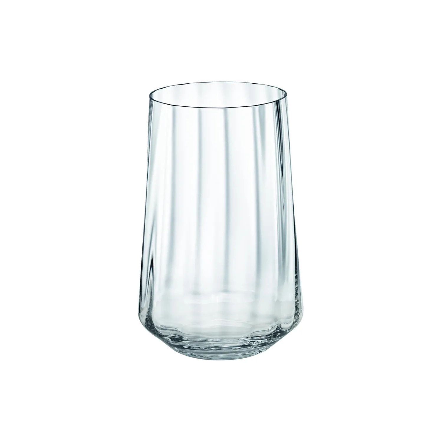De høje Bernadotte glas fuldender borddækningen med sofistikeret elegance. Glassene bærer kollektionens riflede mønster i art deco-stil, som er smukt og behageligt at holde om, og det tidløse design indbyder både til servering af vand og drinks. De høje glas i blyfrit krystalglas er elegante i sig selv og i kombination med tallerkener og skåle fra Bernadotte kollektionen.