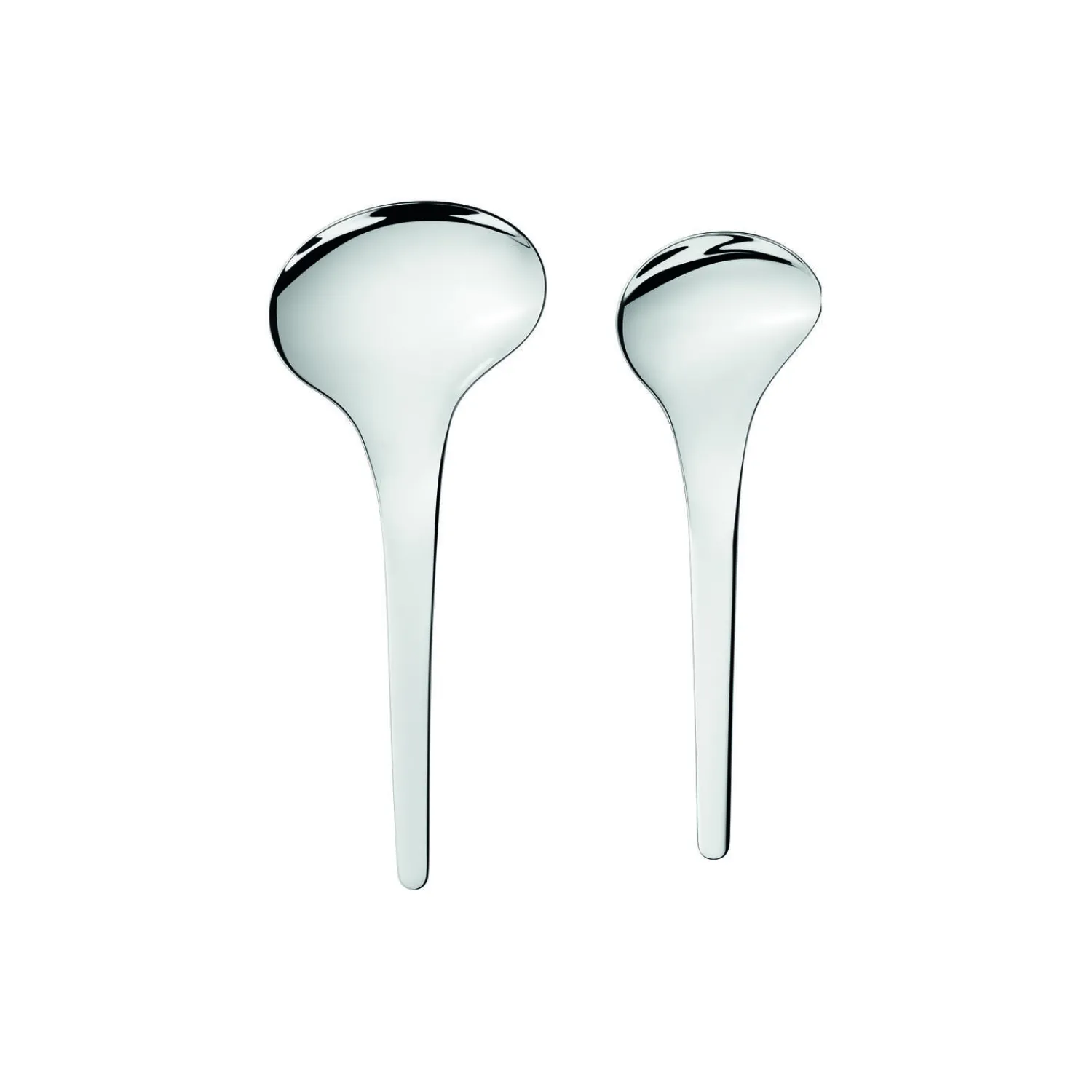 Serveringsskeen BLOOM, der er inspireret af kirsebærblomsternes sarte og yndefulde kronblade, gør det let at anrette med stil. Skeerne er store nok til at kunne servere salat og grøntsager, men stadig lette at bruge. Deres organiske former giver din borddækning et naturligt look.