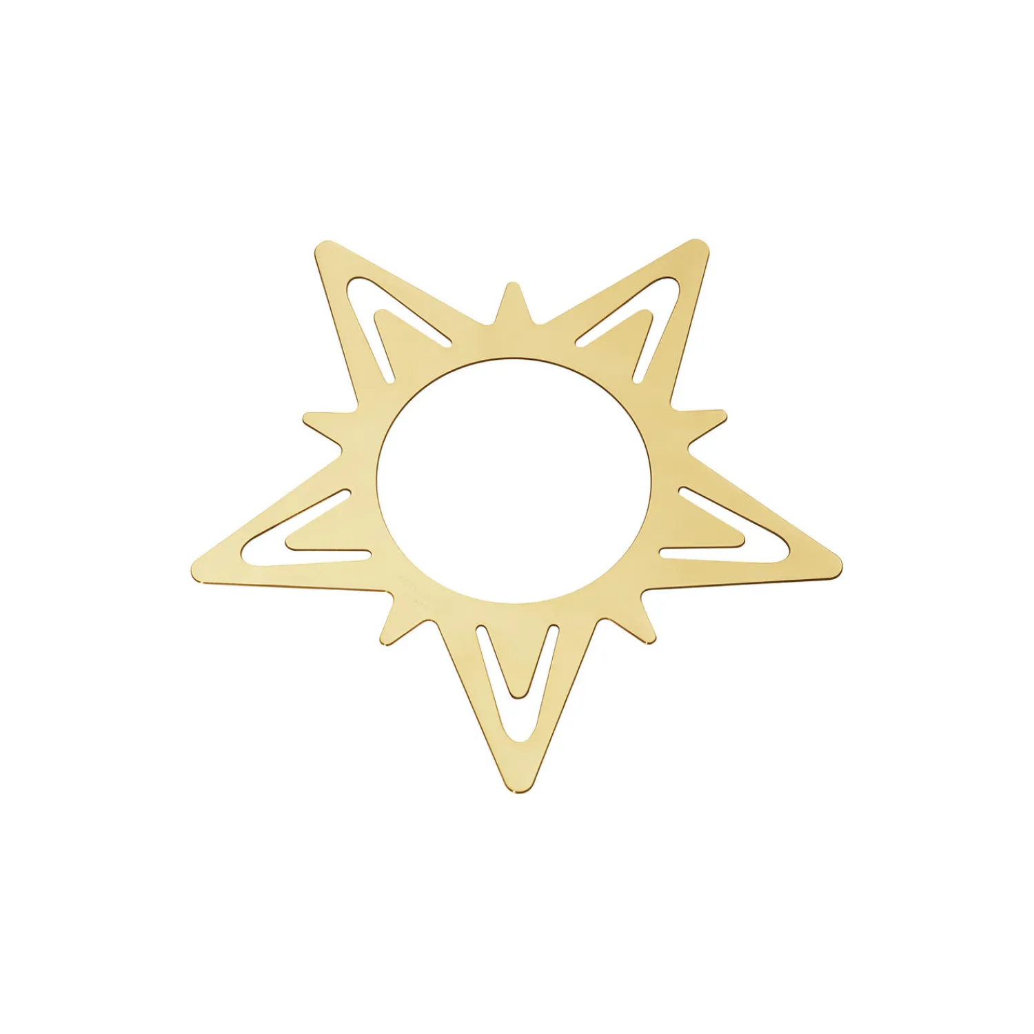 Giv dit spisebord en ekstra smule stjerneklar julestil til dit spisebord med dette sæt af to 18 karat forgyldte servietringe. Med deres markante, udskårne former refererer stjernerne til den skandinaviske modernisme fra midten af århundredet, både i deres grafiske udtryk og i deres funktionalitet – de fungerer også som navnekortholdere til særlige festmiddage. Sættet med to servietringe er dygtigt fremstillet af rustfrit stål og derefter belagt med 18 karat guld.