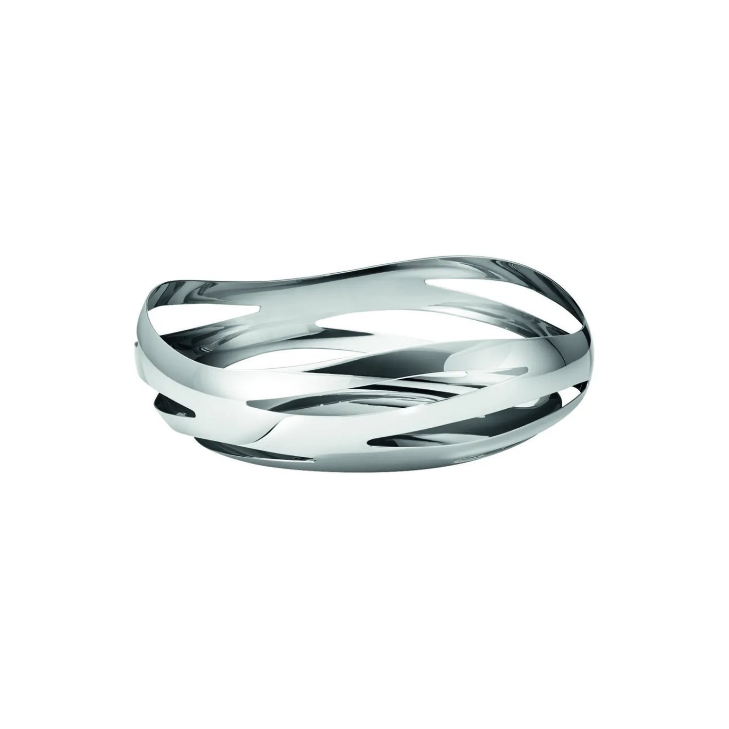 Cobra kurven former sig i blankt rustfrit stål og leder tankerne hen på naturens strå, der fletter sig sammen til en traditionel kurv. Med sine flydende og skulpturelle linjer er Cobra kurven et smukt og moderne element på bordet til servering af brød eller frugt.