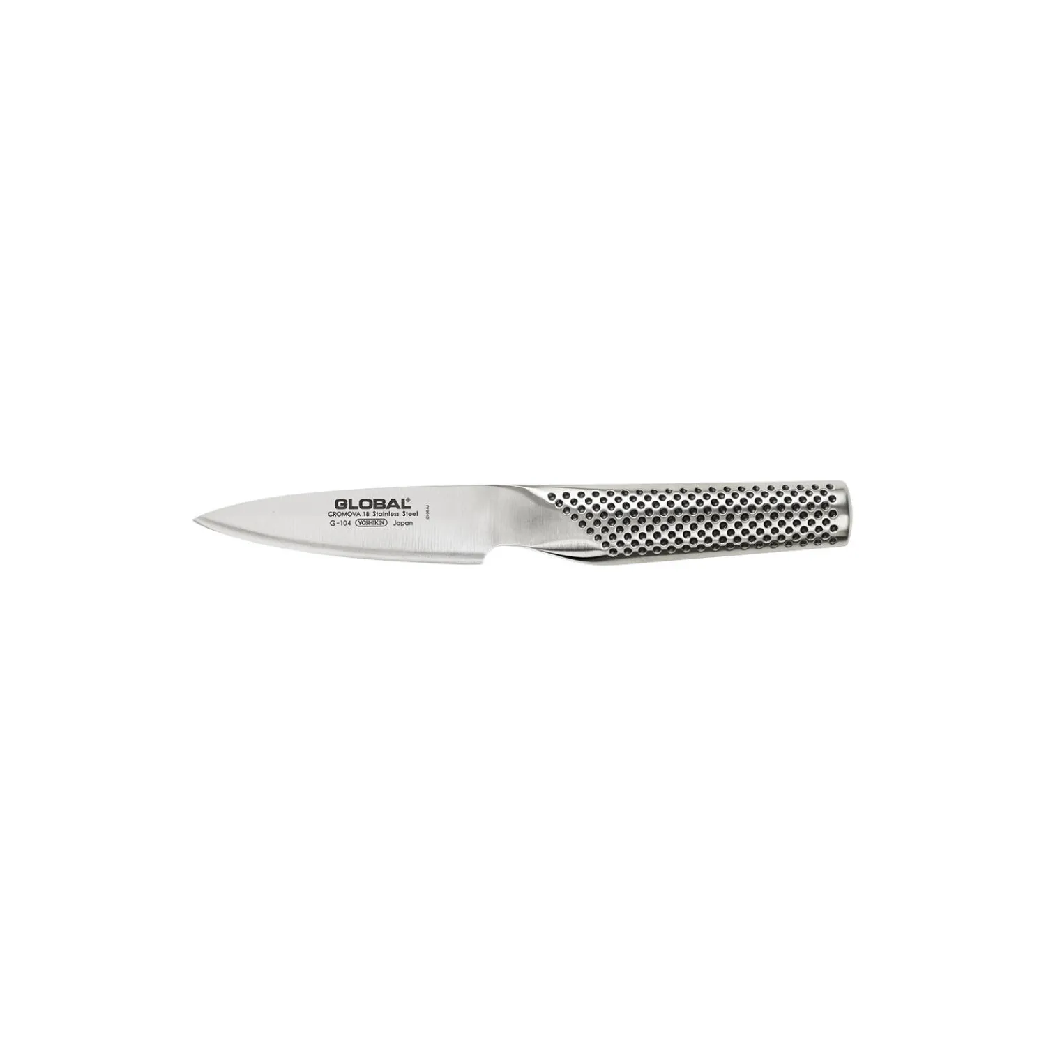 G-104 urtekniv i CROMOVA 18 rustfrit stål fra Global. Farve: stål. Mål: H: 23 cm. Blad: 10 cm. Design: Komin Yamada.