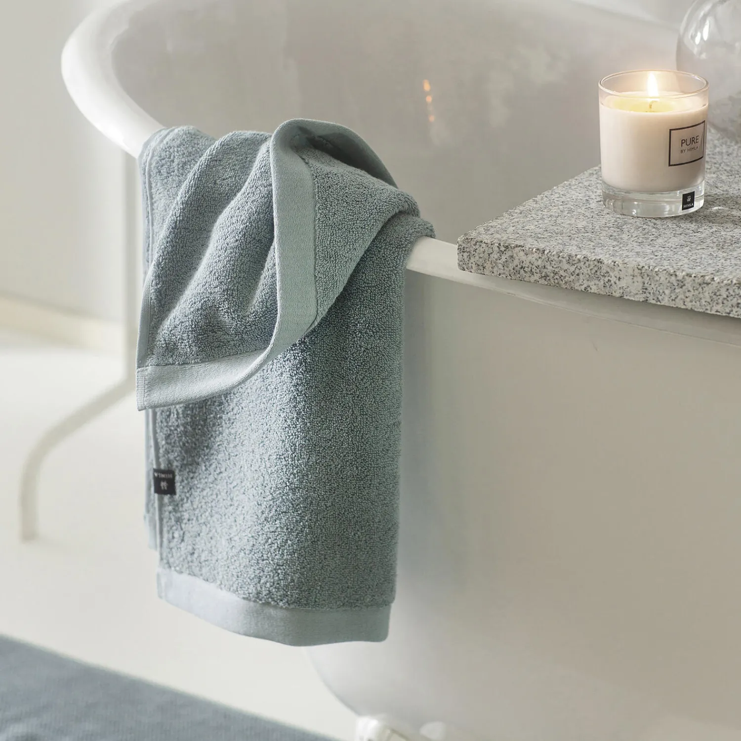 Himlas håndklædekollektion Maxime i økologisk bomuld giver en luksuriøs hotelfølelse. Maxime er lavet af soft twist frottébomuld, en kvalitet med en blød karakter, hvor de tætte og kompakte løkker giver dobbelt så meget sugeevne som traditionel bomuldsfrotté. Håndklæderne har et fyldigt, men luftigt præg, og de tørrer hurtigt. Maxime bør tørretumbles for at bevare sin oprindelige blødhed efter vask. Maxime er lavet af 100% økologisk bomuld.