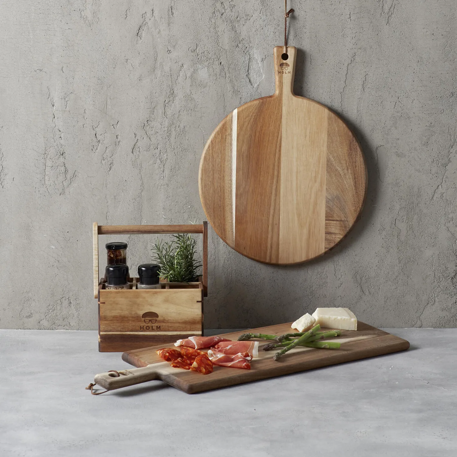 Redskabs-/opbevaringsholder i akacietræ. Kan bruges til opbevaring af redskaber eller fyldes med andre lækre HOLM produkter. Sættes aldrig i blød.Varen er produceret i FSC®-certificeret akacietræ (FSC-C166612).
