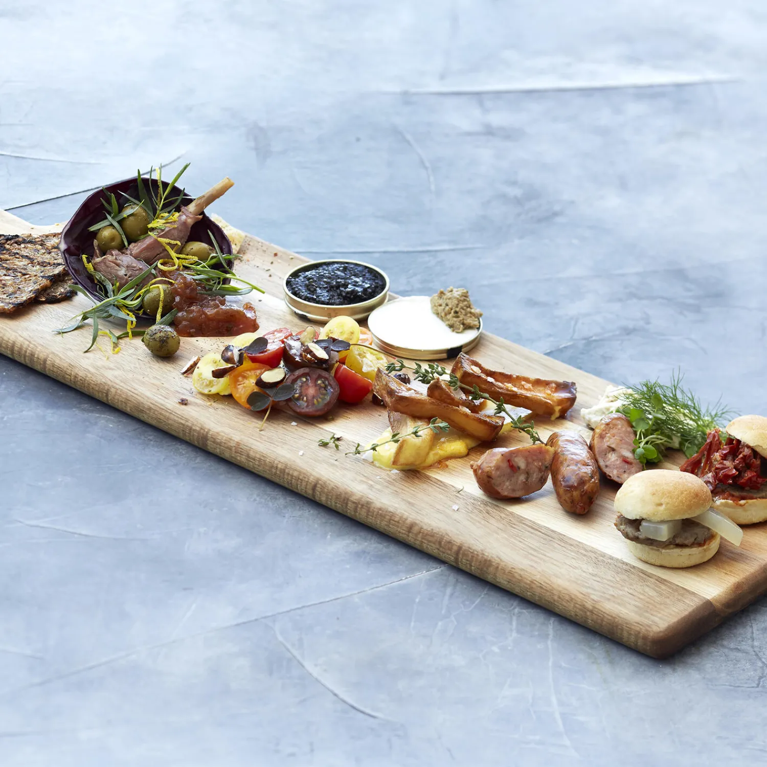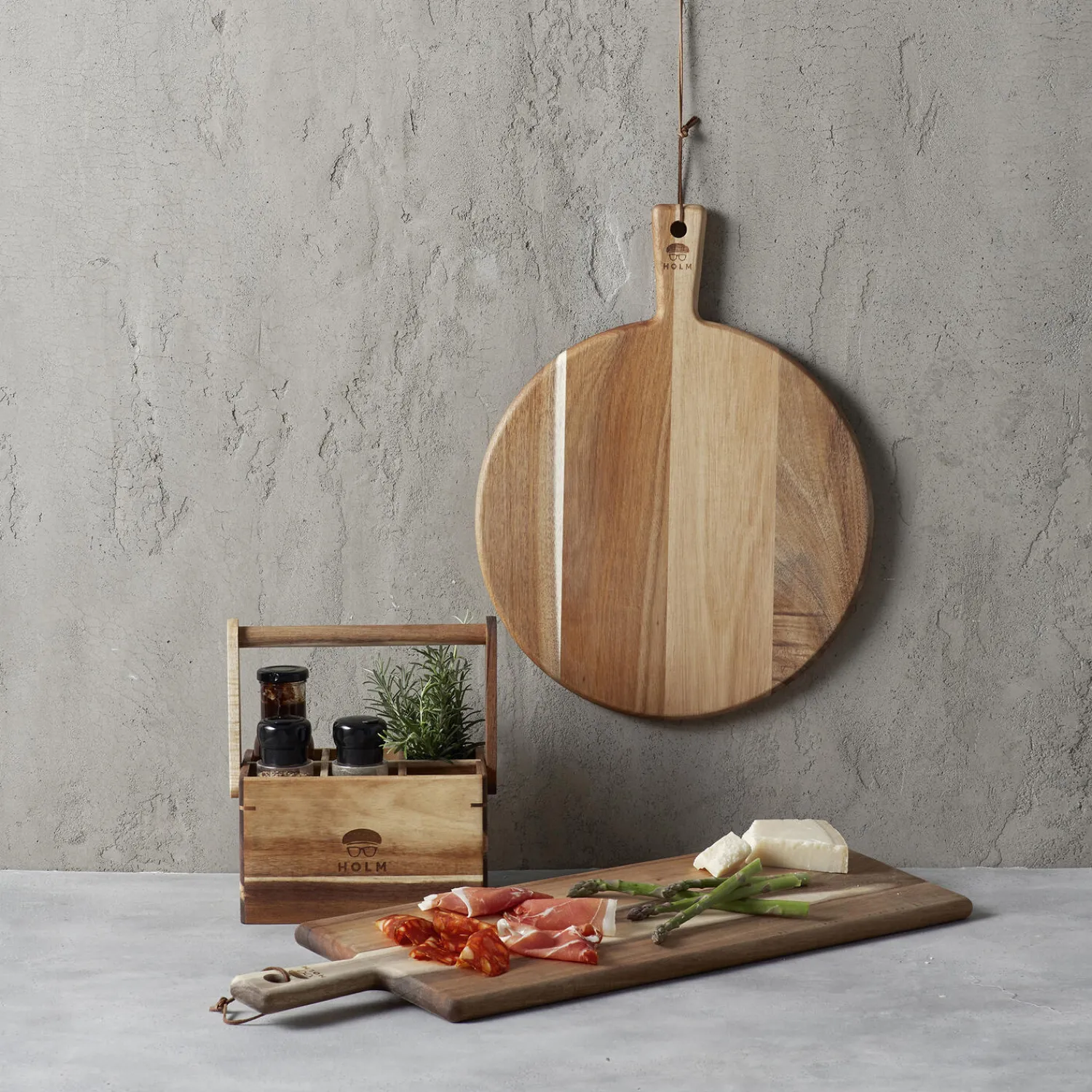 Serveringsbræt i akacietræ.Kan bruges til servering af lækre antipasti-retter og anden slags pålæg.Læg aldrig dit serveringsbræt i blød.Vaskes med varmt vand og mild sæbe.Brættet kan med fordel efterbehandles med madolie et par gange om året.Varen er produceret i FSC®-certificeret akacietræ (FSC-C166612).