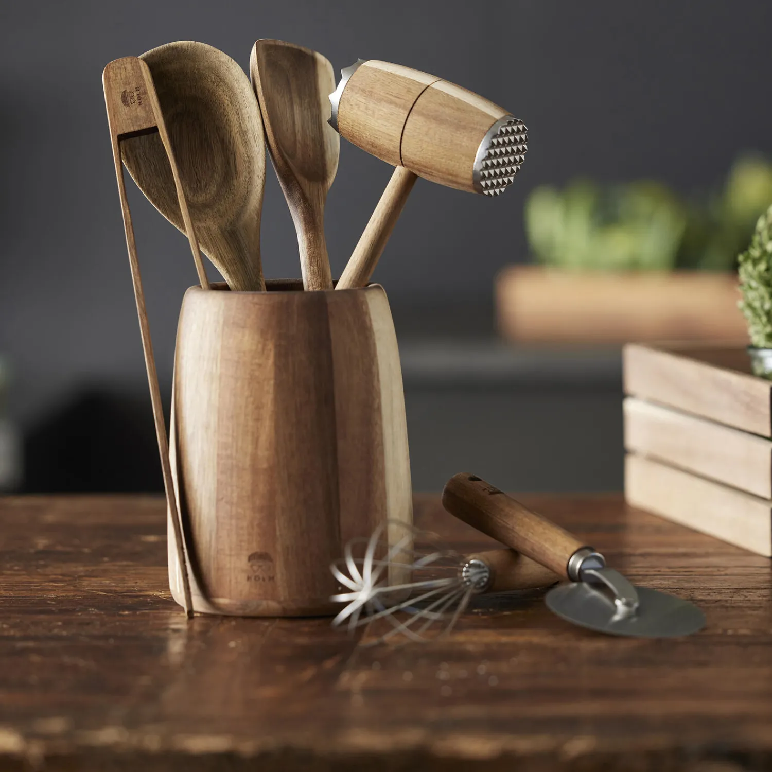 Ske i oliebehandlet akacietræ. Firkantet hoved. Skeen kan med fordel efterbehandles med madolie et par gange om året. Vaskes af med lunkent vand og mild sæbe. Lægges aldrig i blød. Ikke egnet til maskinopvask. 30 x 6 cm. Varen er produceret i FSC®-certificeret akacietræ (FSC-C166612).