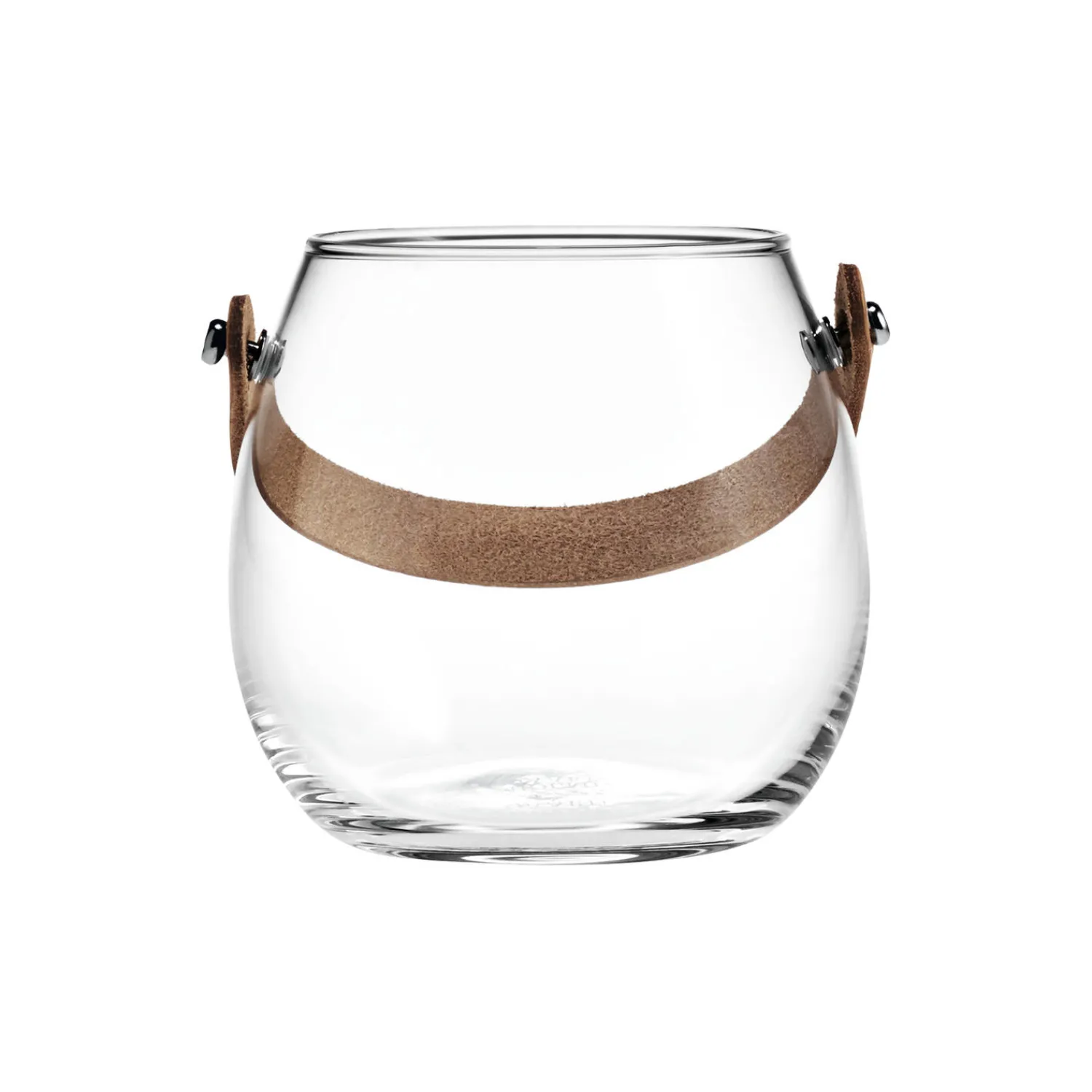 Maria Berntsen har skabt den fine krukke i den populære Design With Light serie, og det er ingen overdrivelse at kalde den multifunktionel. Den er smuk til både indedørs og udendørs brug, men skal bo inde pga. læderhanken. Det skandinaviske rene look med kernelæderhank gør sig både godt som opbevaring af blyanter og pensler, spænder og smykker og servering af snacks og småkager. Den lille krukke kan også rumme en perlehyacint eller anden forårsbebyder. Krukken findes i tre størrelser som vist her på 10 cm og i to større varianter på hhv. 12 og 16 cm. En god gaveide til alle anledninger. Hvert stykke mundblæst glas er unikt og håndlavet af glaspusteren, som omhyggeligt blæser den rigtige mængde luft gennem den smalle pibe. Luftbobler i glasset er derfor uundgåelige og udgør en del af den charme, der kendetegner mundblæst glas.