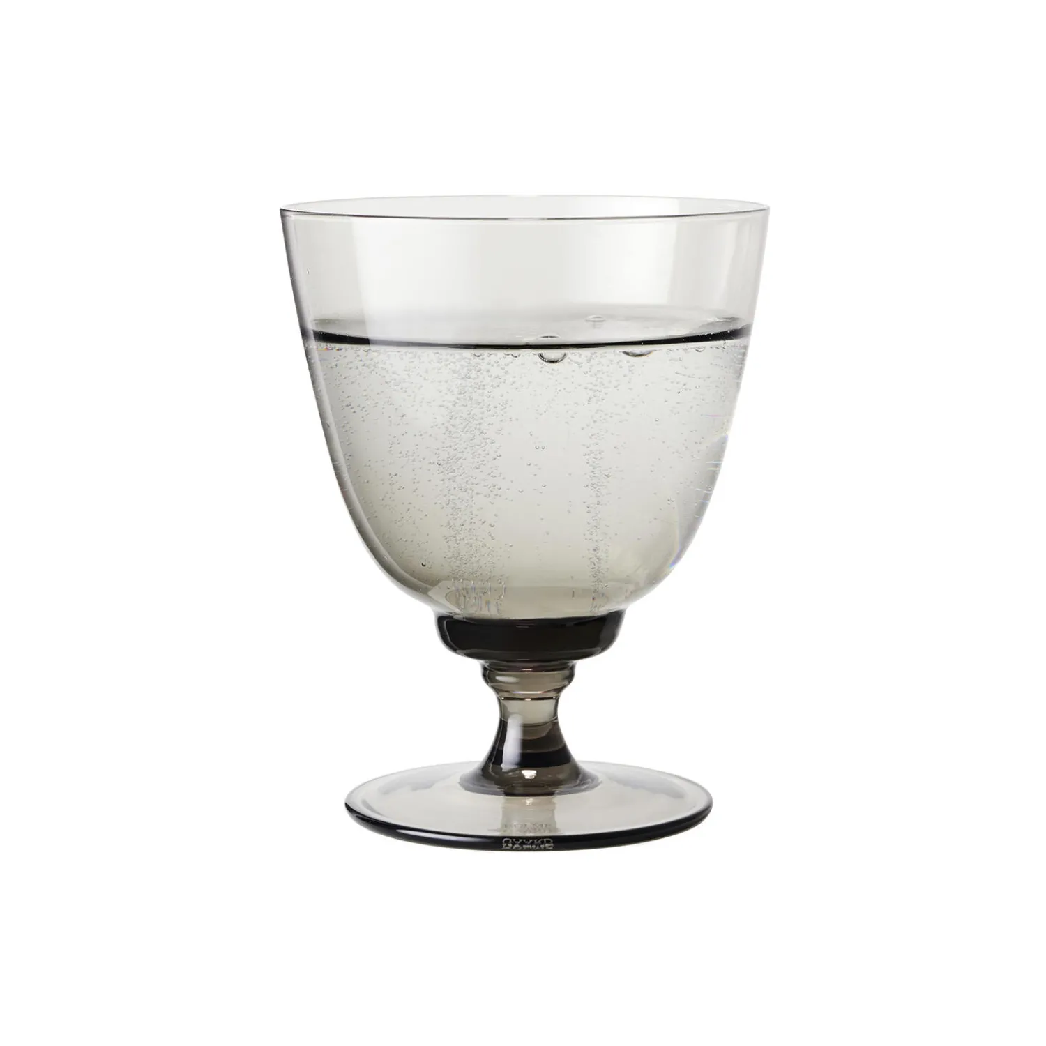Sæt kulør på hverdagen med en verden af glas i smukke farver. De smukke farver i Holmegaard-serien Flow giver øjeblikkeligt liv til borddækningen og vækker sanserne på ny. Glassene har en klassisk form og er designet med et diskret bølgemønster i bunden inspireret af ringe i vandet. Flow-vinglasset på 35 cl har fået et lille løft og står på en ydmyg lille fod og fremstår som et afslappet allround vinglas, der går til rødvin, hvidvin, rosé og alt med bobler. Alle glas i Flow-serien er mundblæste, så hvert enkelt er helt unikt. Farven Smoke er en elegant, klassisk glasfarve, der passer til al borddækning og sørger for at skabe balance mellem de mere farverige glas. Find din favoritfarve i Flow-serien, eller bland flere forskellige farver i borddækningen og skab dit helt eget udtryk fuld af personlighed. Tåler opvaskemaskine ved maks. 55 grader.