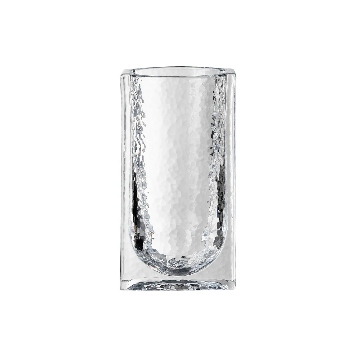 Forma er med sine tunge skulpturelle konstruktioner i massivt glas, en produktserie med rødder i den historiske Bauhaus tid, hvor former såsom kuber, kugler og cylindere fungerer som de primære formgreb. Forma rummer samme grafiske styrke i form af massive geometriske former, der skærer sig ind i hinanden. Det stærke formsprog arbejder med det negative rum omkring konstruktionen og dermed hvordan hjernen aflæser formernes sammensmeltning. Vasen har en højde på 20 cm og er lavet af klart presset glas. Glasset har en struktureret overflade på hver side, hvilket giver en subtil kontrast til de meget strenge geometriske former. Vasen står smukt som skulpturel og dekorativ centrepiece eller sat sammen med de andre Forma produkter.