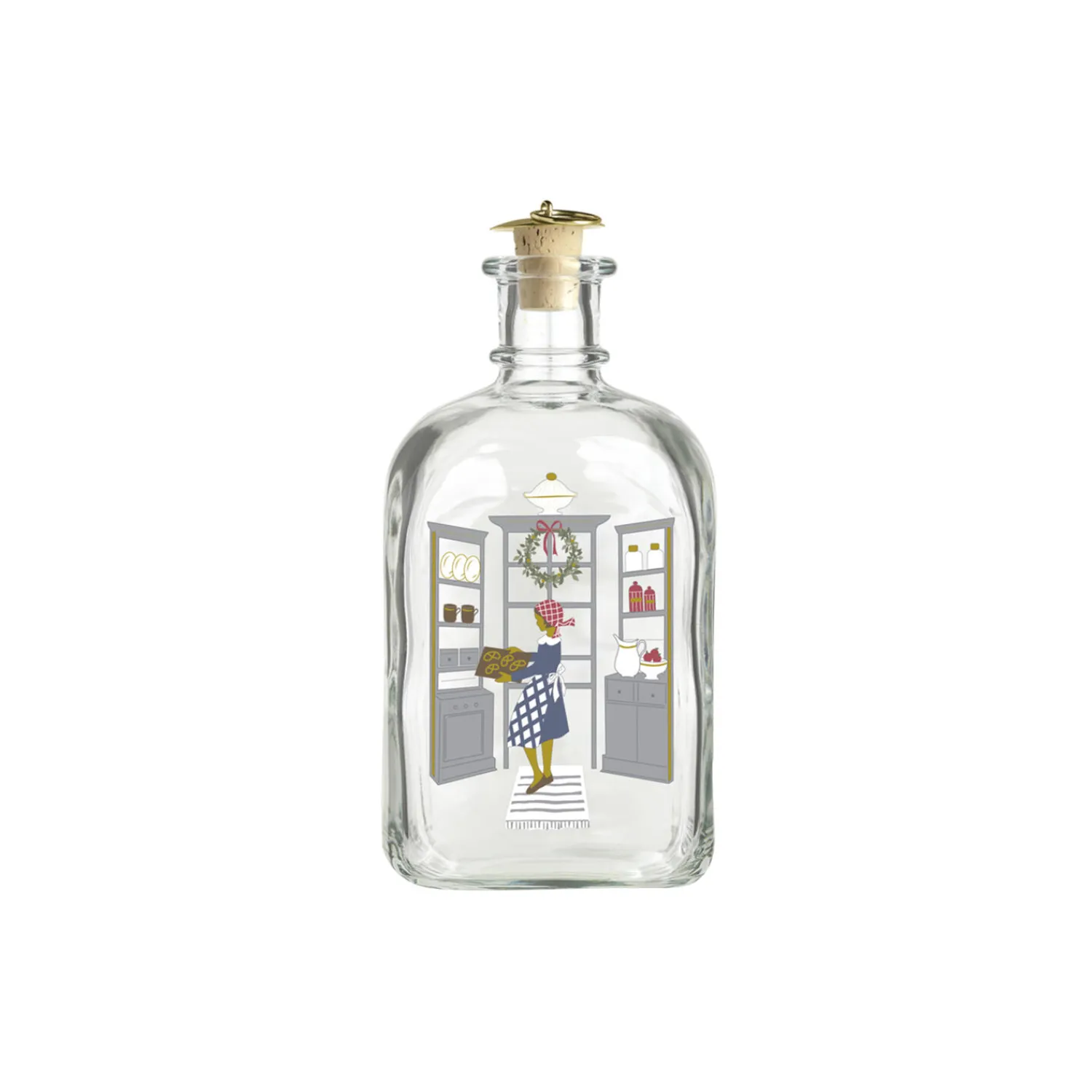 En følelse af jul som i gamle dage. Med kunstner Jette Frölichs nostalgiske og mesterlige papirklip inviterer Holmegaard Christmas dig med indenfor i julekøkkenet, der stemningsfuldt og levende rammer en nostalgisk og hyggelig julestemning. Oplev den ikoniske Holmegaard Christmas Juleflaske i 2024-udgaven og nyd kombinationen af Holmegaards refleksioner i glas og Jette Frölichs originale og kunstneriske univers, mens du hilser julen velkommen med familie og venner. Juleflasken er 21 cm høj og kan indeholde 73 cl – perfekt til årets hjemmelavede julesnaps. I 2024-motivuniverset tager Jette Frölich os med ind i hjemmets hjerte: køkkenet. I december er det her, magien sker, når der skal bages julekager og laves julemad, som vi har glædet os til smagen og duften af lige siden sidste jul. Men køkkenet er ikke kun et sted, hvor alskens julelækkerier bliver frembragt. Det er også her, vi hygger os og er sammen. Det er her, vi pakker gaver ind, hvor adventskransen tændes, og hvor vi får lidt varmt at drikke, når frosten bider udenfor. Her kommer bagværket duftende ud af ovnen, mel og sukker står fremme, juleæblerne pynter i skåle, og hyggen fuldendes med hyacinter i glas og julekranse i vinduerne. Holmegaard Christmas Juleflaske tåler ikke opvaskemaskine.