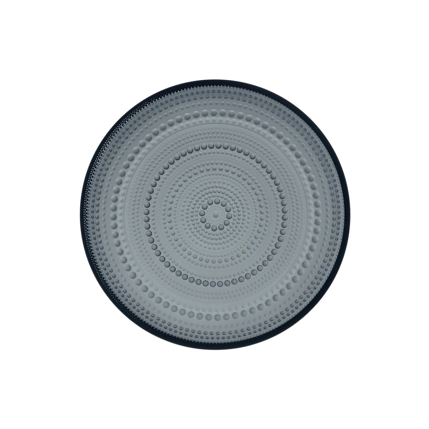 Kastehelmi tallerken i glas fra Iittala. Farve: mørkegrå. Mål: Ø 24,8 cm. Design: Oiva Toikka.