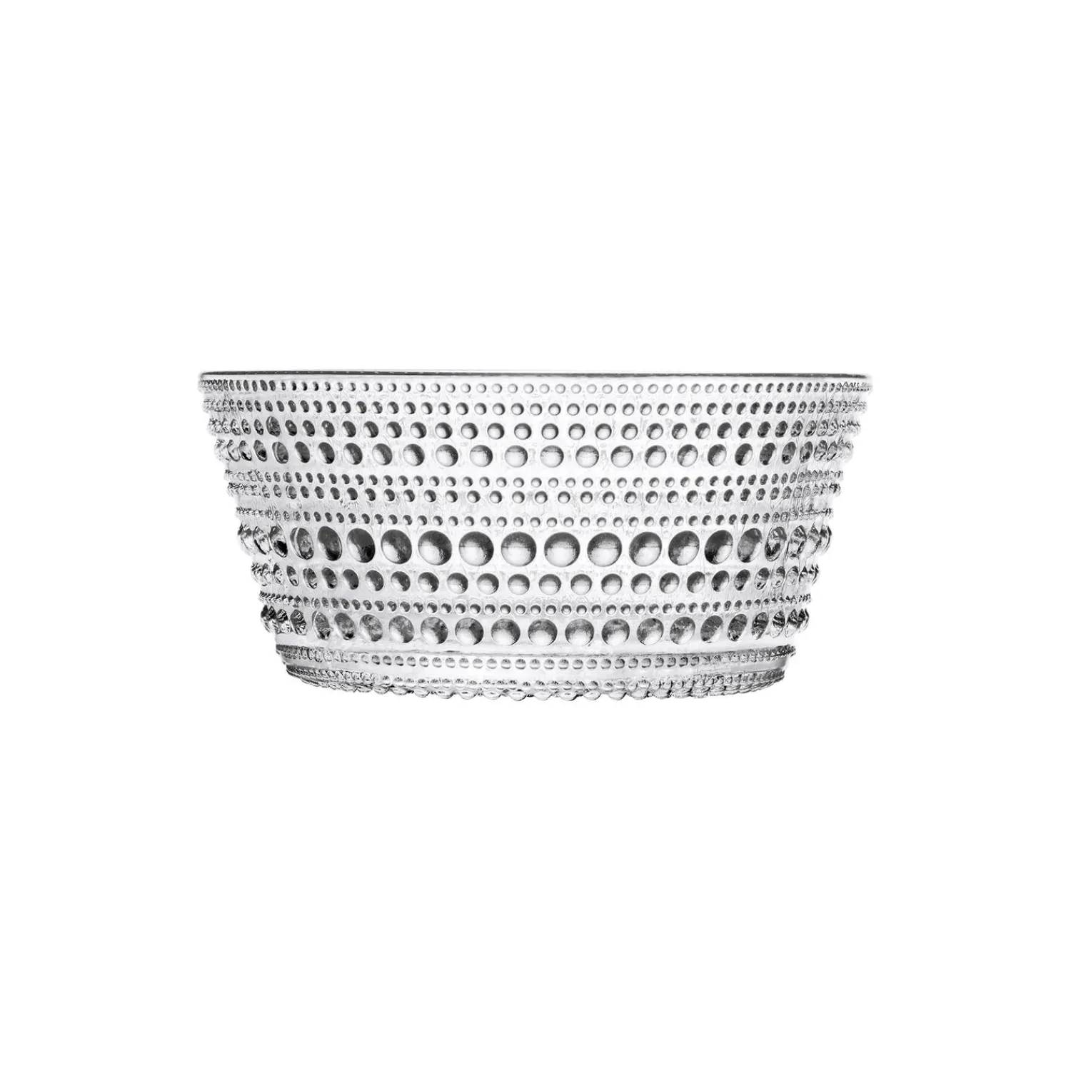 Finnish design legend Oiva Toikka’s pioneering Kastehelmi collection came from his determination to find a design that would hide joint marks in glass. The groundbreaking result was a distinct pattern featuring circles of raised glass droplets that resemble strings of dewdrops glistening under the morning sun. Kastehelmi (“dewdrop” in Finnish) plays with light, truly bringing out the reflective beauty of the glass. Iittala’s beloved Kastehelmi collection offers a wide range of versatile, tactile pieces that are both functional and decorative. The delicate yet durable clear Kastehelmi bowl is perfect for a hearty breakfast, snacks, sides and displaying candy. Collect a set. Great wedding, birthday, anniversary or housewarming gift idea. Dishwasher safe.