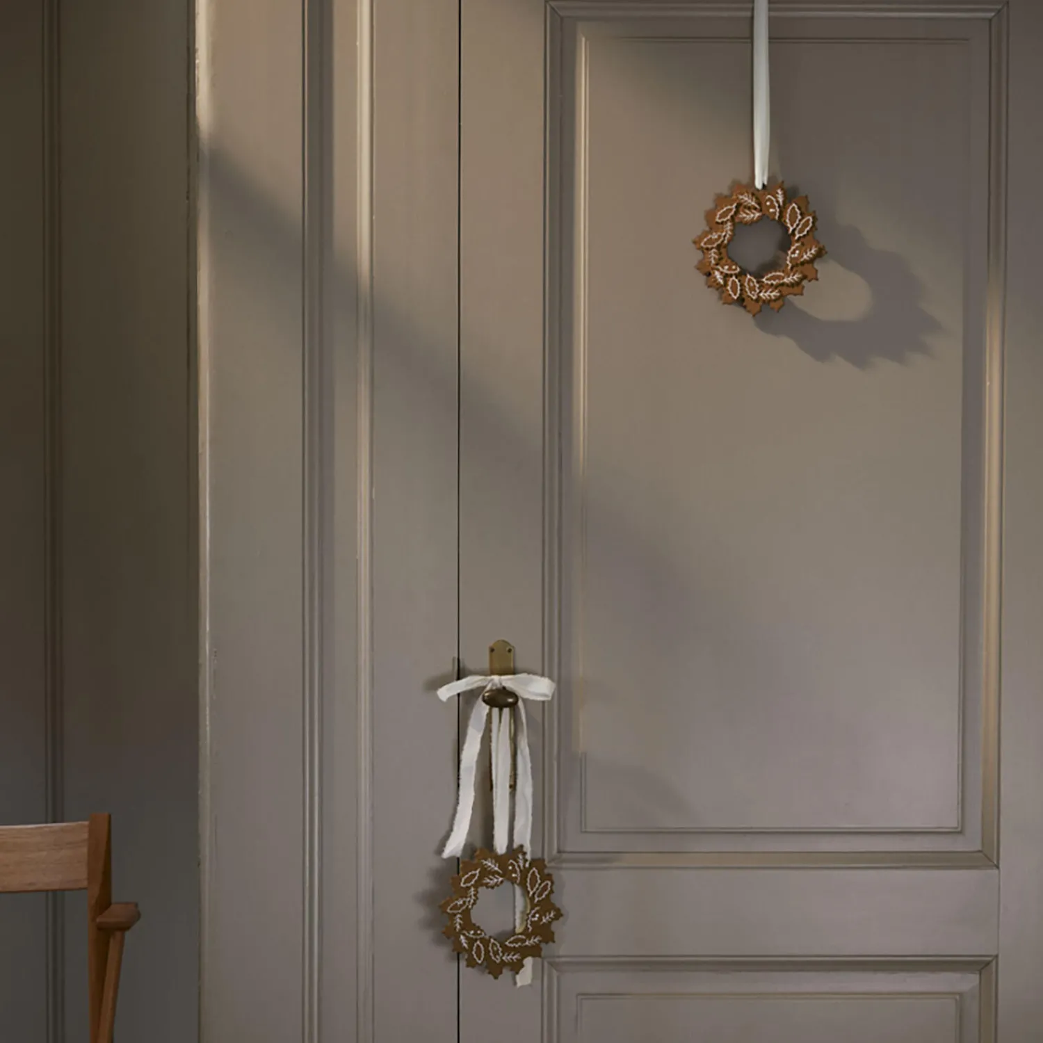 En smagfuld juleklassiker i håndlavet keramik. Kähler Gingerbread er en serie af moderne honningkagehuse og en julekrans fra Kähler, hvor kombinationen af et charmerende udtryk og håndlavede designtraditioner møder varmen fra fyrfadslysene og de klassiske juletraditioner, der skaber både stil og hygge. Bagværk hører julen til, og med sit naturtro udtryk er det det let at forestille sig, at Kähler netop har taget en nybagt honningkage ud af keramikovnen. Ja, du kan næsten dufte den, men tag ikke fejl – hele Gingerbread-serien er skabt i stentøj, og den hvide glasur er keramisk. Kähler Gingerbread Julekransen har en diameter på 18,5 cm og vil pynte på væggen, i vinduet eller på døren gennem hele december. Traditionen med at pynte op med kranse i julen går langt tilbage i historien, og ikke mindst kristtjørn er et klassisk materiale til en smuk og stemningsskabende krans, der her er genskabt i stentøj. De elegante blade skaber en taktil og levende krans, der naturligvis også er pyntet med hvid glasur, der står i smuk kontrast til det varme og brune farve på stentøjet. Gingerbread Julekransen kan tages frem år efter år og drysser ikke – en smuk og hyggelig tilføjelse til julepynten i hjemmet. Mette Bache og Barbara Bendix Becker er designerne bag Kähler Gingerbread, og deres formgivning er kendetegnet ved mødet mellem det stringente og det autentiske. Lyshusenes geometriske flader blødes op af de sirlige dekorationer og de mange vinduer og døre, der alle – stor som lille – er udskåret i hånden, så lyshusene får et naturligt og hyggeligt udtryk. Og på samme måde er Julekransen enkel og grafisk, men fuld af liv og autenticitet i kraft af bladenes dekorationerne og det håndlavede udtryk.