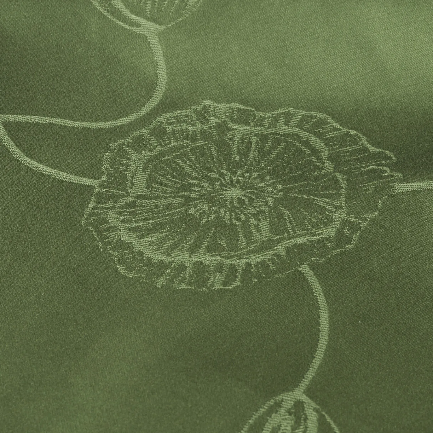 Med Hammershøi Poppy-damaskdugen i afdæmpet olivengrøn vokser valmueblomsten fra Kählers populære Hammershøi Poppy-stel ind i tekstiluniverset som vævet valmuemotiv og giver dig en flot mørk bund til både det klassiske hvide Hammershøi-stel og selvfølgelig Poppy-stellet. Poppy-serien er kendetegnet ved en poetisk og moderne fortolkning af naturens eget kunstværk, og med den grønne Hammershøi Poppy-damaskdug breder du i en tidløs elegance smukt den florale æstetik ud over hele bordet, hvor naturens egen grønne farve vil skabe en varm og velkendt tryghed og på fornemmeste vis forbinde Hammershøi Poppy-serien til naturen udenfor. Dugen måler 150×370 cm og kommer i 100% økologisk bomuld, der også er OEKO-TEX®-mærket. Valmuen er kendt for sine kreppede blomsterblade og feminine farvenuancer og falder dermed perfekt sammen med damasktraditionen, der med blanke og matte tråde løfter blomstermotivet og lader det træde frem som strukturmønster på dugen. Hammershøi Poppy-damaskdugen gør din borddækning smuk og personlig og vil danne rammen for mange hyggelige timer omkring bordet året rundt.