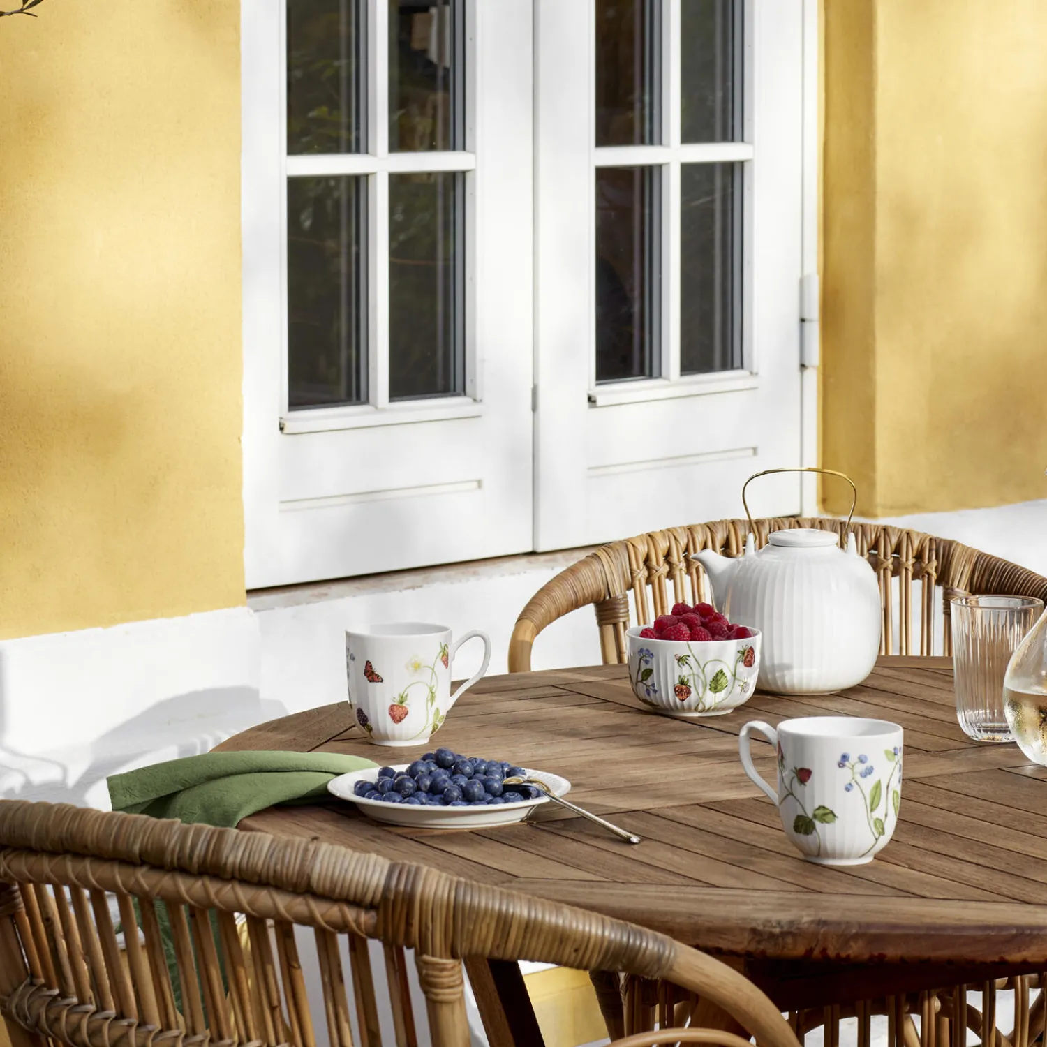 Hammershøi Summer er essensen af den smagfulde og blomstrende sommer foreviget på udvalgte dele fra det populære Hammershøi-stel fra Kähler. Med kruset her kan du skabe en glad og hyggelig sommerstemning, når du dækker op til kaffe og lidt lækkert i haven, på terrassen, altanen eller i sommerhuset. Kruset rummer 33 cl og prydes af sommersøde bær og en legende og poetisk sommerfugl. Seriens diskrete riller giver kruset et elegant og klassisk udtryk, der tilføjes et element af hygge og sommerstemning i kraft af illustrationerne. Du kan næsten mærke solens stråler og den lune sommervind, når du betragter Hammershøi Summer. Og Rikke Jacobsen, der er kunstneren bag akvareldekorationerne, er netop inspireret af den danske sommers eventyrlige former, farver og følelser.