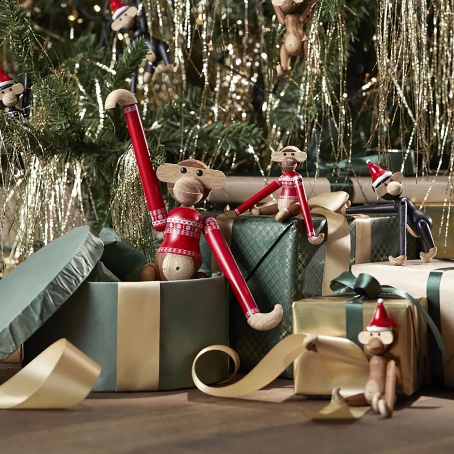 Original julemagi i et flot og moderne snit. Med den altid smilende Kay Bojesen Abe i en unik juleversion iført en klassisk rød julesweater væves historien om Kay Bojesens alletiders verdensberømte designikon og vores hyggelige juletid endnu tættere sammen. Kay Bojesen Abe Julesweater 2024 er fremstillet i FSC®-certificeret teak og kommer i både denne klassiske lille størrelse på 18,5 cm i højden og miniversionen på 9,5 cm. Begge prydes med et klassisk julemønster med de fineste julestjerner og snefnug i hvid på bryst, mave og skuldre – og med en sød lille detalje med et smalt bånd med et julerudemønster ved hver ærmekant. Trøjens røde bundfarve er malet med stor omhyggelighed, mens mønsteret i hvid er påført med print med største præcision ned til de mindste detaljer, så julesweateren får det autentiske og gennemarbejdede udtryk fuld af den sjæl og humor, der altid har været udgangspunktet for Kay Bojesens unikke håndværk og historiefortælling. Brugen af de klassiske julefarver og et ikonisk julemønster gør Aben selvskreven som et levende og legende element i en moderne indretning i julen, hvor den vil skabe smil og stil med sin finurlige fremtoning og sit farverige udseende – uanset hvor den flytter ind. Kay Bojesen Abe Julesweater 2024 er nostalgisk og nyskabende dansk design, der ydmygt og med et glimt i øjet bygger videre på Kay Bojesens ikoniske designarv og fuld af julesjov, stjerner og snefnug tilføjer et nyt kærligt kapitel til hans originale fortællinger i træ.