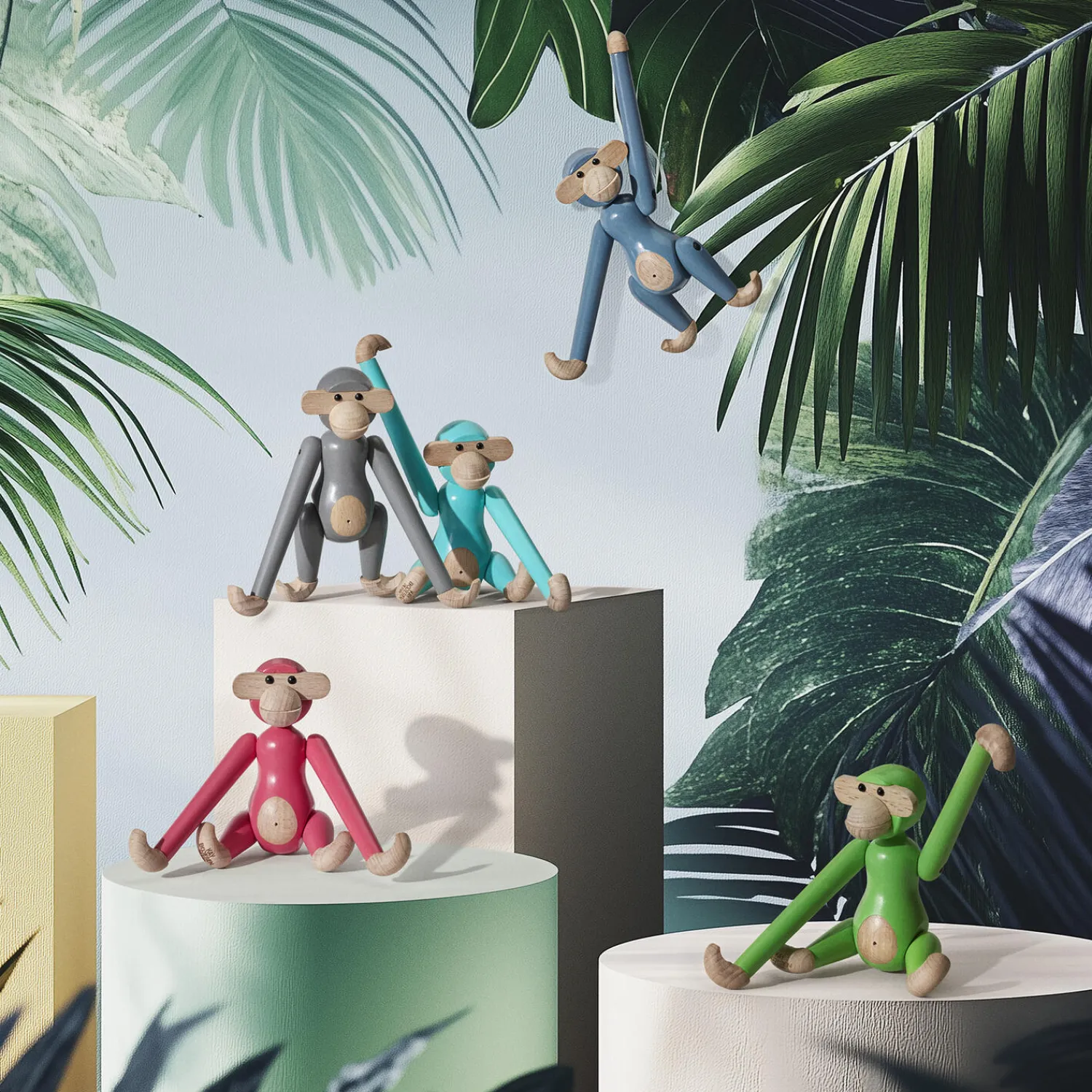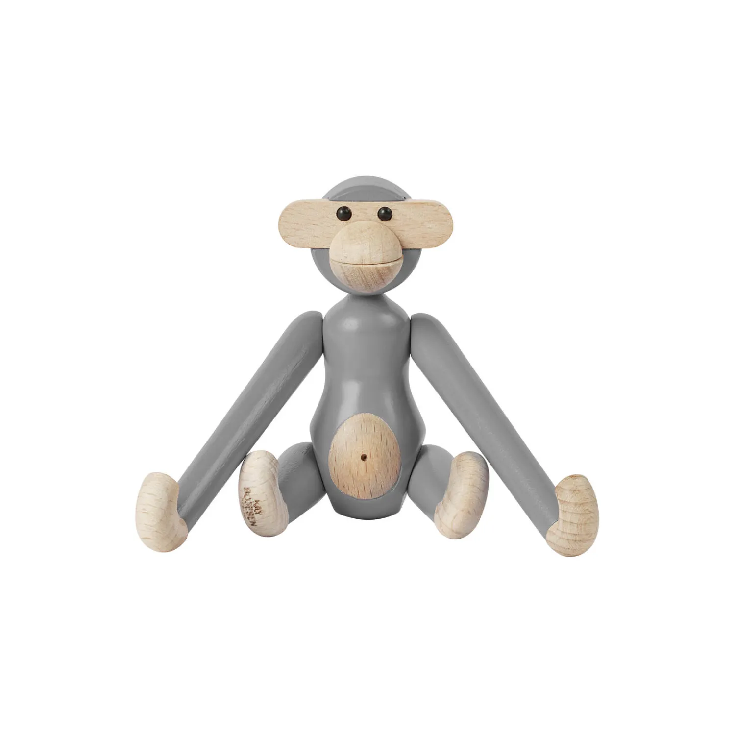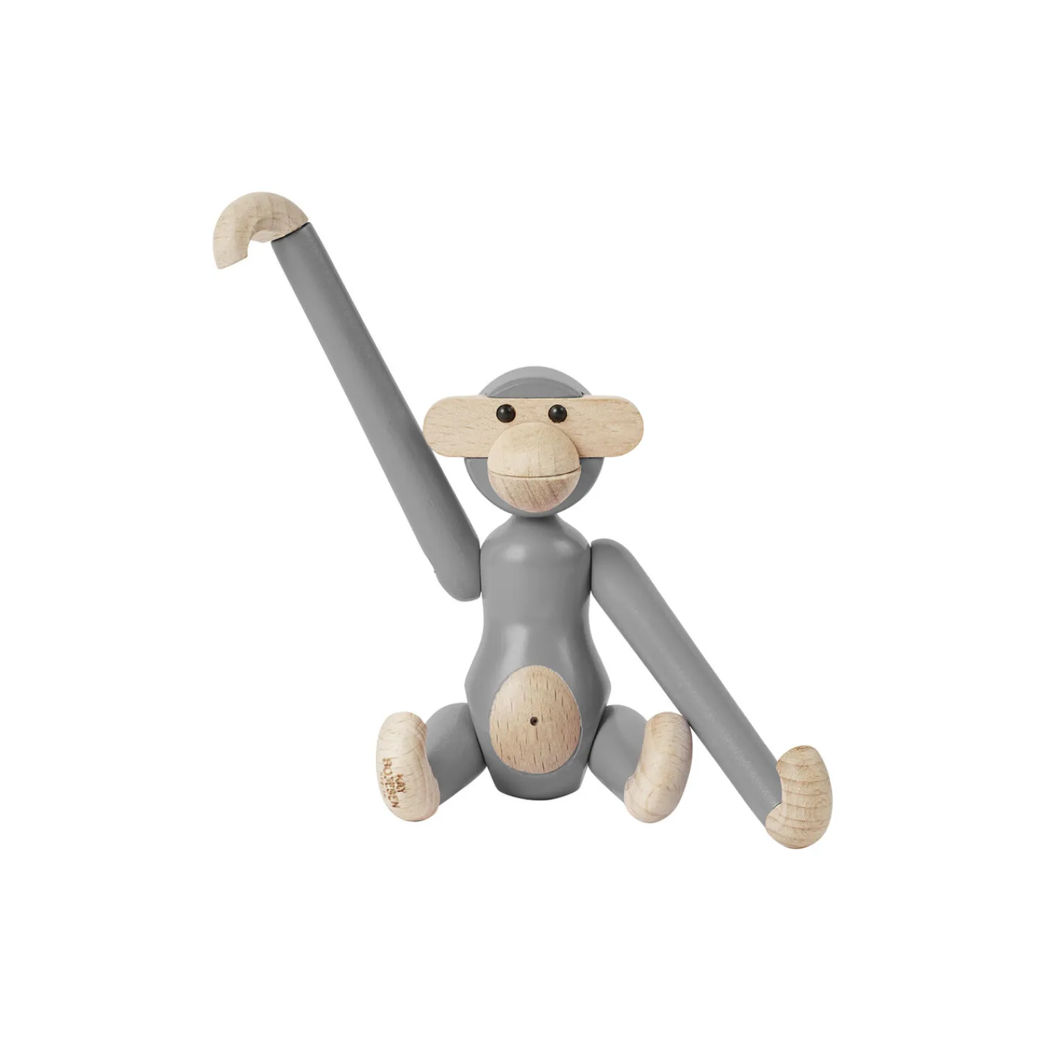 En både nostalgisk og nyskabende humørspreder. Kay Bojesens abe har altid haft en farverig personlighed, og med den ikoniske miniabe i bøgetræ i nye og mere farverige klæder bygger vi ydmygt og med et glimt i øjet videre på Kay Bojesens designarv og skaber nye originaler. Miniaben i grå emmer af livsglæde og fremstår i et flot trendy look, hvor den rolige farve står smukt til bøgetræets kølige udtryk og er med til at fremhæve skønheden i træet. Den grå farve hylder naturens dybe ro og evige afslappethed med drivende skyer og strandenes dæmpede, grålige nuancer. Aben måler 9,5 cm i højden og er fremstillet i FSC®-certificeret bøgetræ, der træder frem på hænder og fødder, ansigt og mave og giver miniaben i bøgetræ et lidt kækt og ungdommeligt præg. Brugen af farver gør aben perfekt som et legende element i en moderne indretning, hvor den vil skabe smil og stil med sin finurlige fremtoning og sit farverige udseende – uanset hvor den flytter ind. De farvede miniaber er et æstetisk statement, der minimalistisk og elegant fremhæver Abens runde former og understreger Kay Bojesens grafiske og enkle design. Med miniaben i et væld af farver hyldes originalt dansk design i et nyt og sprudlende udtryk med stemningsfremmende farver, legende farvekombinationer og smukt håndværk.