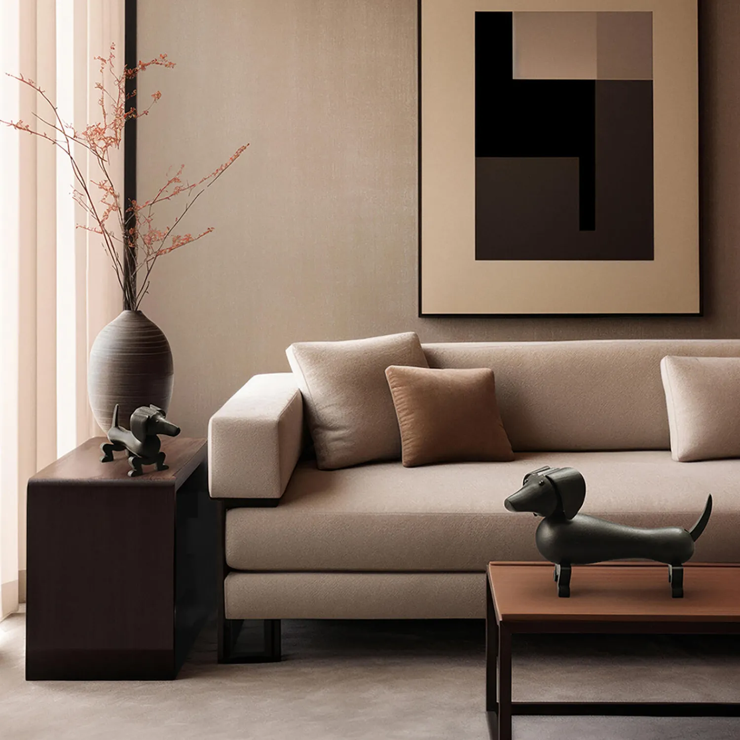 Med sit moderne og minimalistiske udtryk er det ikke til at se, at Gravhunden Pind er fyldt 90 år i 2024. Skabt af Kay Bojesen i 1934 er den blot endnu et bevis på, at Kay Bojesen formåede at skabe ikoniske designs, som vi aldrig bliver trætte af at kigge på. Faktisk var gravhunden et af de allerførste dyr, som Kay Bojesen skabte, og de runde former, bløde kanter og smilende linjer, der blev hans signatur, er allerede tydelige i designet af Pind. Jubilæumsversionen af Gravhunden er udformet i mørkbejdset eg, og på billeder fra arkivet ses det, at Kay Bojesen faktisk lavede ganske få mørke Gravhunde i sin levetid. Derfor var det helt på sin plads at genoplive Pind med mørk ’pels’ til jubilæet, hvor den mørke bejdse giver en smuk glød og et varmt udtryk til det liv og spil, der er i egetræet. Den mellemstore jubilæumshund måler 28,5 cm – en original størrelse, der ikke før har været sat i produktion, men som var den størrelse Kay Bojesen lavede Pind i tilbage i 1934. Denne størrelse Gravhund løfter desuden hovedet på en særligt charmerende måde og kigger tillidsfuldt op. Pind er forsynet med et 90-årslogo og sælges kun i 2024 i forbindelse med jubilæumsfejringen.