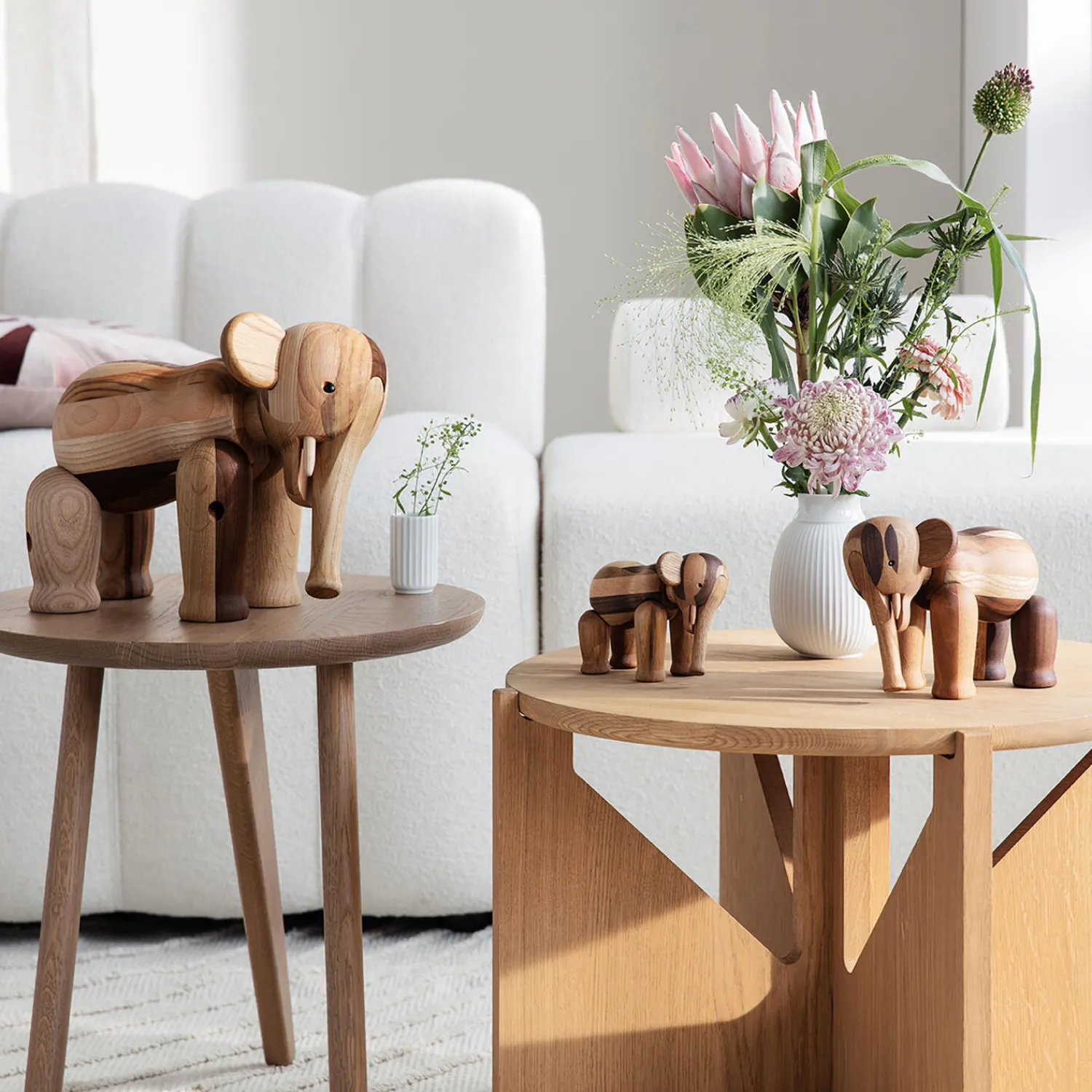 I 2023 har Kay Bojesens ikoniske og elskede Elefant 70-årsjubilæum. Det fejrer vi med en Reworked Elefant – en særudgave, der skabt af en skøn blanding af forskellige træsorter, for eksempel teak, valnød, eg, ask og ahorn – alt sammen overskuds- og resttræ, der ellers ville være gået til spilde. Med fokus på upcycling og minimering af ressourcespild får Reworked Elefanten en ny, moderne og bæredygtig dimension, så den ikke kun peger tilbage i tiden, men også frem. I fremstillingsprocessen bruges der af respekt for miljøet det resttræ, der er til rådighed, og derfor vil hver enkelt Reworked Elefant se forskellig ud, afhængig af hvilke træsorter, der er tilovers, den dag de produceres. Med andre ord kan vi ikke garantere, hvilke træsorter hver af Reworked Elefanterne er produceret af. Men vi kan til gengæld garantere, at hver enkelt Elefant om muligt er endnu mere unik end den originale klassiker. Mini Reworked Elefanten måler 9 cm i højden, har et 70-års jubilæumsstempel under foden og kommer i en særlig jubilæumsæske af træ i et begrænset antal.