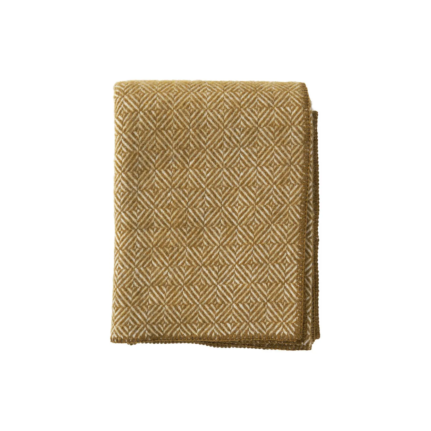 Diamonds plaid i 70% lammeuld og 30% alpakauld fra Klippan Yllefabrik. Farve: caramel. Mål: 130×200 cm.