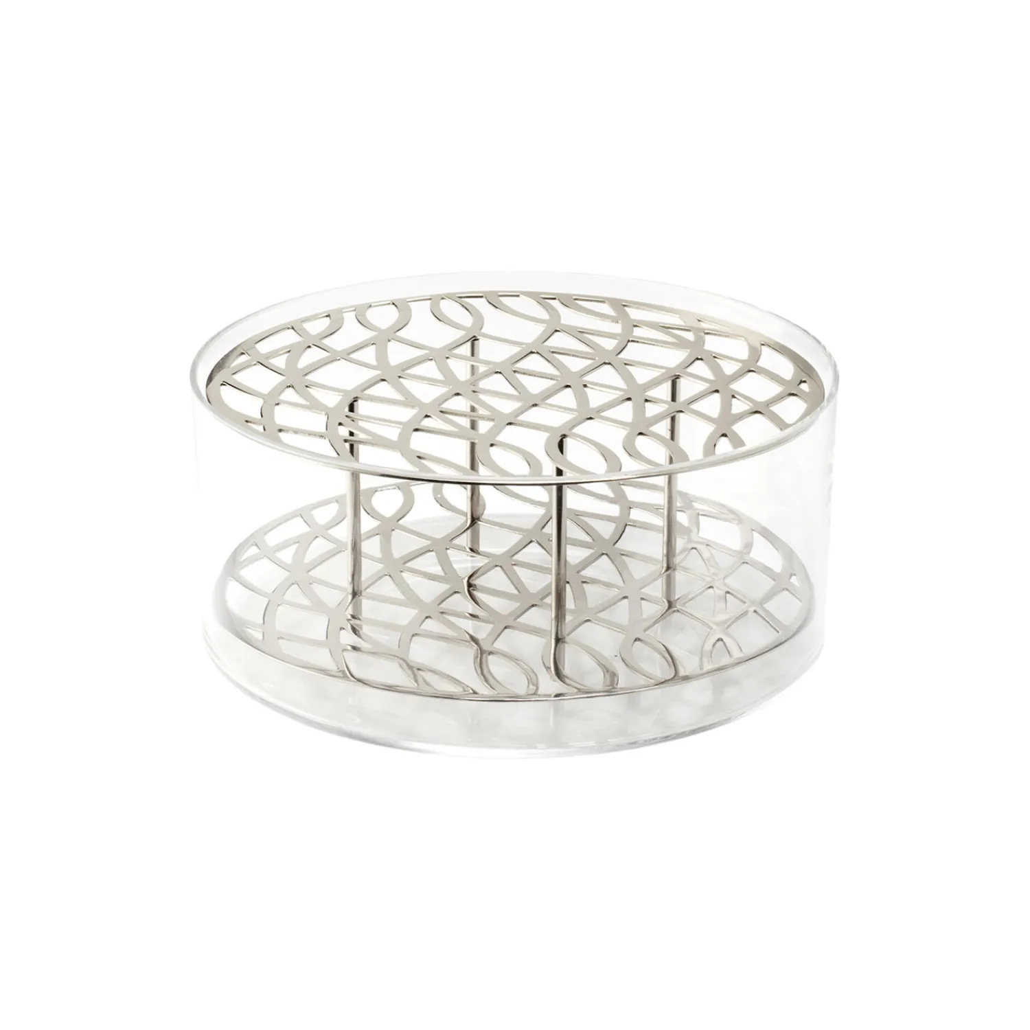 The idea of Äng is to give each individual flower support to stand by itself. The vase has a metal insert with a beautiful pattern, which makes it a piece of art. The structure lets the flowers fall into place and create a nice and organized flower decoration. The vase is mouth blown clear glass from Böhmen, Czech Republic and the insert is available in brass, black, blue/green and silver plated.