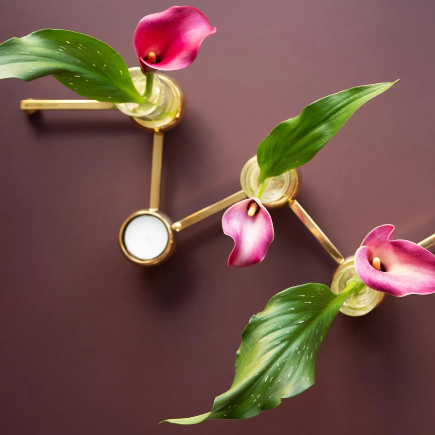 Constella tealight candle holder is a pleasant source of light, perfect for decorating the table. Create a straight line, a star, a circle, or another shape of your choice. It comes in brass and aluminum, and in two sizes; with five or ten tealight holders. Accessories that can be added are vases for flowers, inserts for taper candles or star shaped candle-rings in brass or nickel.