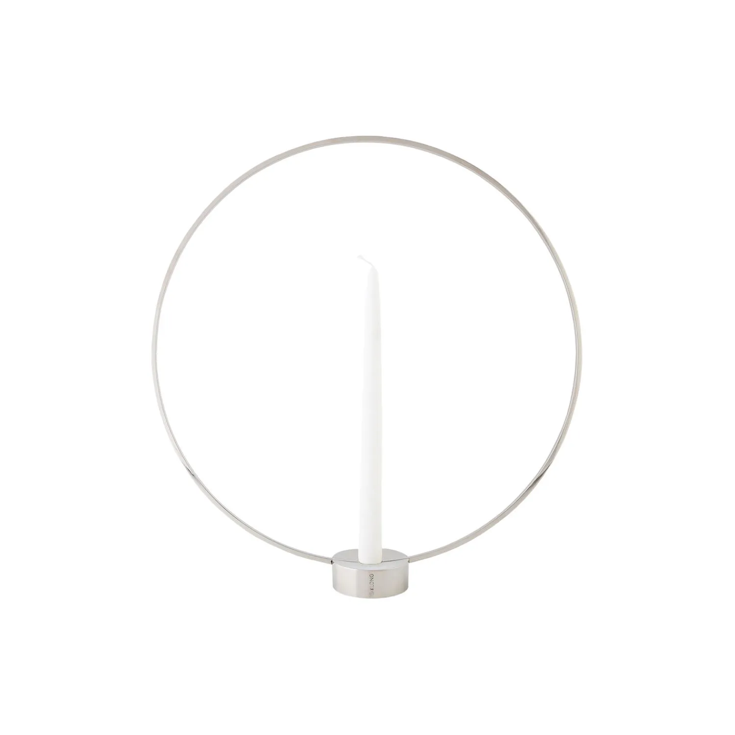 The light creates a nice gentle luster with its beautiful halo. The candlestick is made of brass or nickel-plated brass and is available in two sizes. Gloria can be complemented with a glass insert to create a floral decoration.