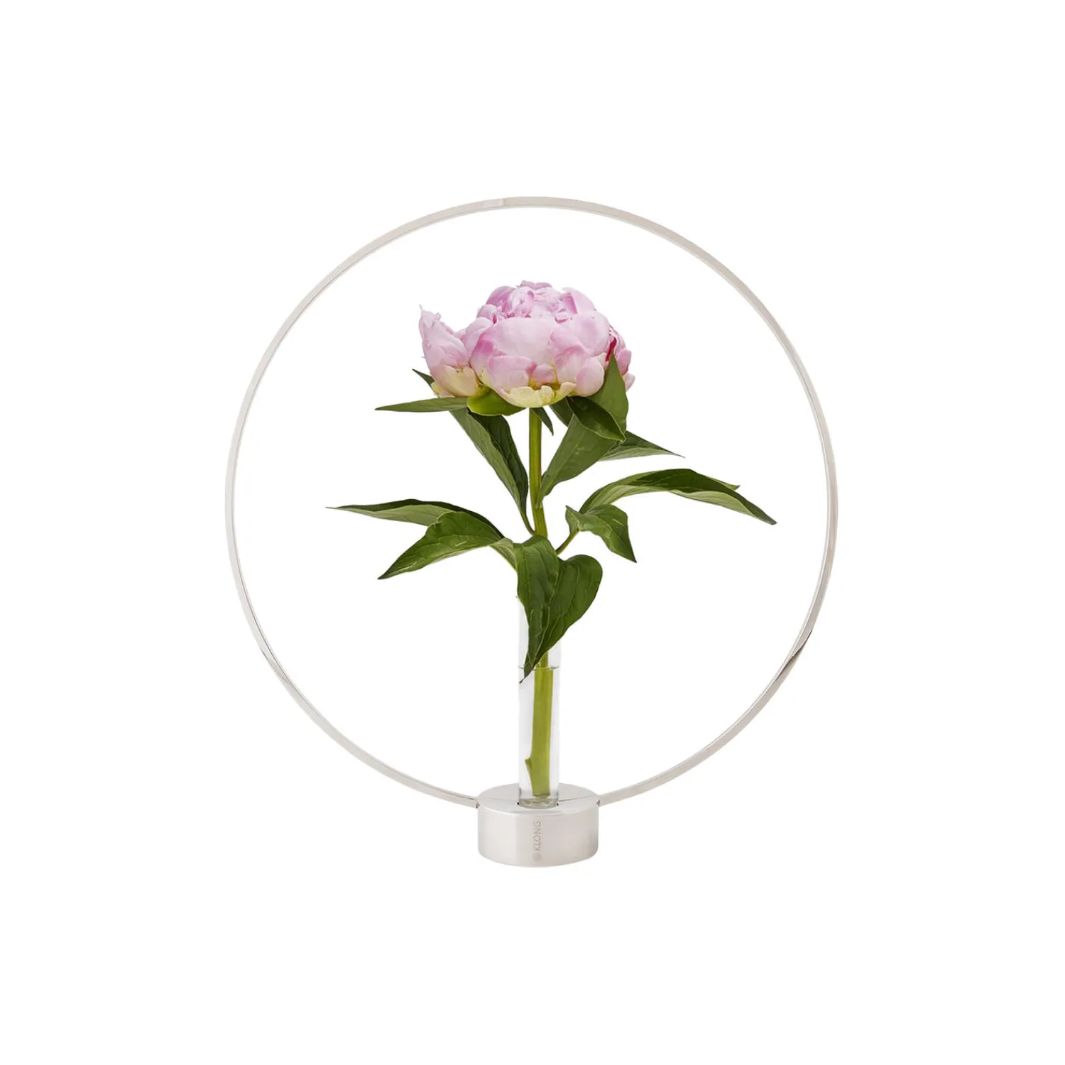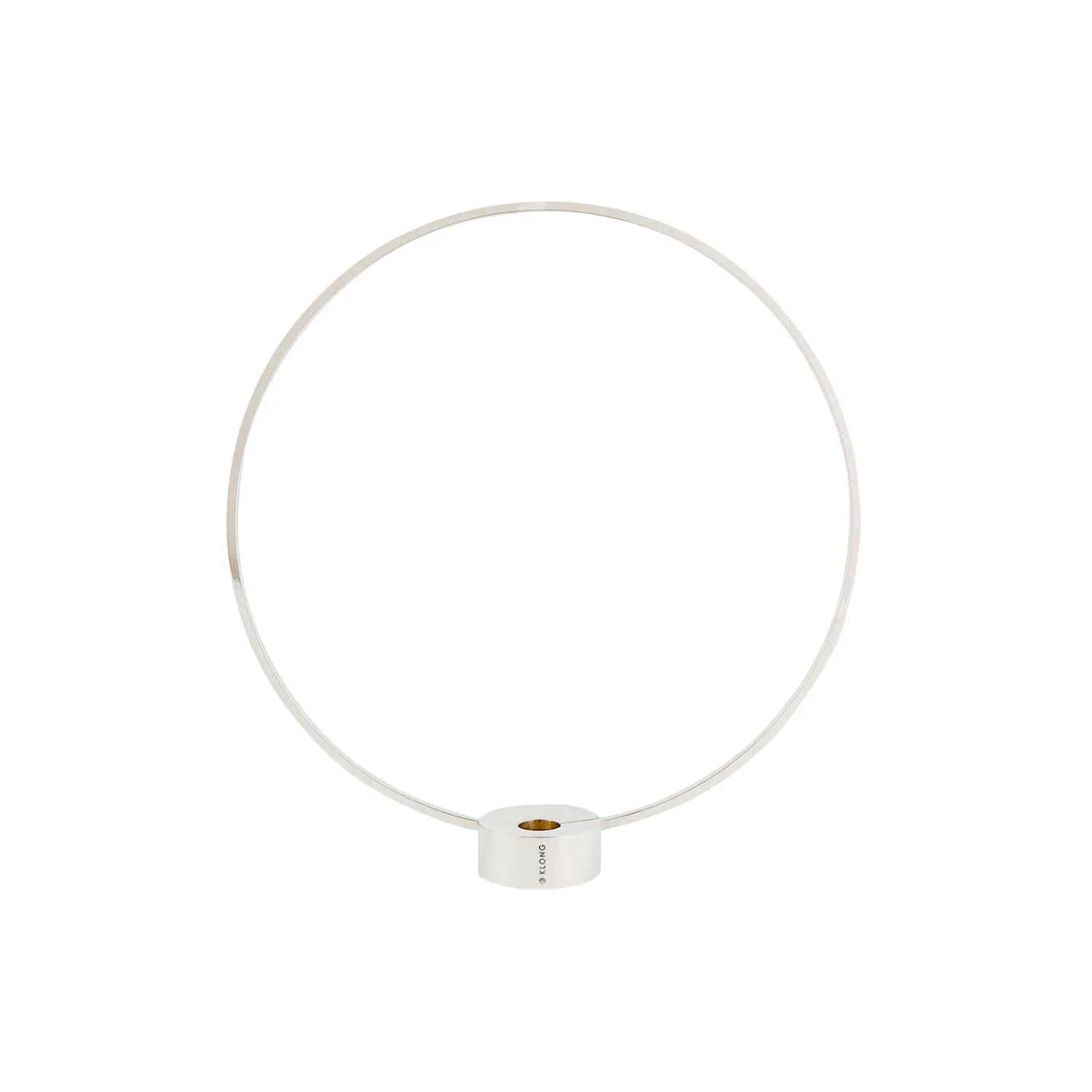 The light creates a nice gentle luster with its beautiful halo. The candlestick is made of brass or nickel-plated brass and is available in two sizes. Gloria can be complemented with a glass insert to create a floral decoration.