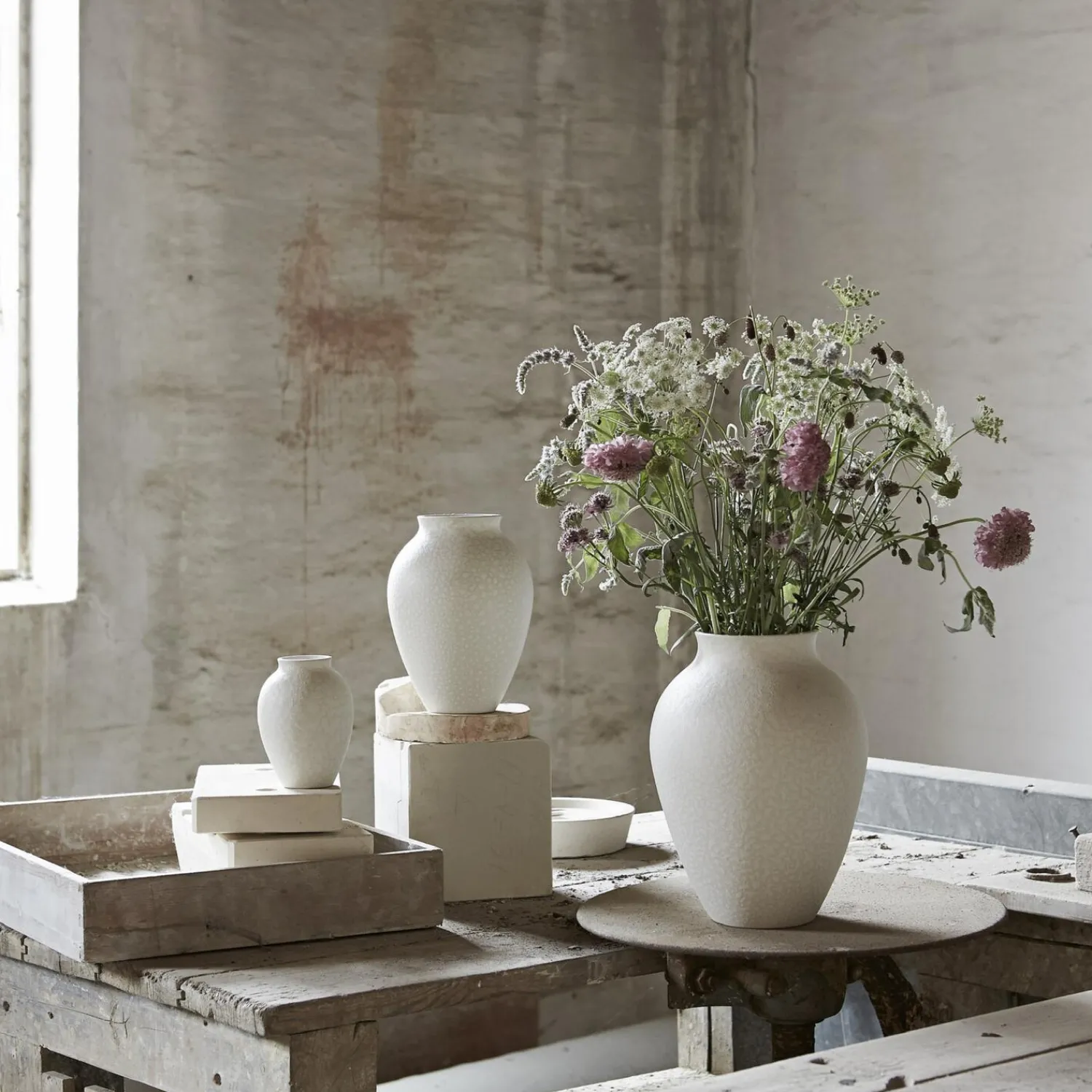 Gennem tiden har Knabstrup Keramik produceret et utal af smukke vaser i forskellige formgivninger. Denne vase er vi særligt stolte af. Den blev oprindeligt formgivet i slutningen af 1940’erne og med sin elegante og klassiske form er vasen et tidløst stykke keramik, der holder stilen langt ind i fremtiden. Knabstrup vasen er designet, så den ikke bare præsenterer sig selv, men også sæsonens blomsterbuketter og grene på smukkeste vis. Nu lanceres vasen med riller, hvilket giver den klassiske form helt nyt liv og giver et moderne og interessant udtryk, som passer perfekt ind i den nordiske boligindretning.