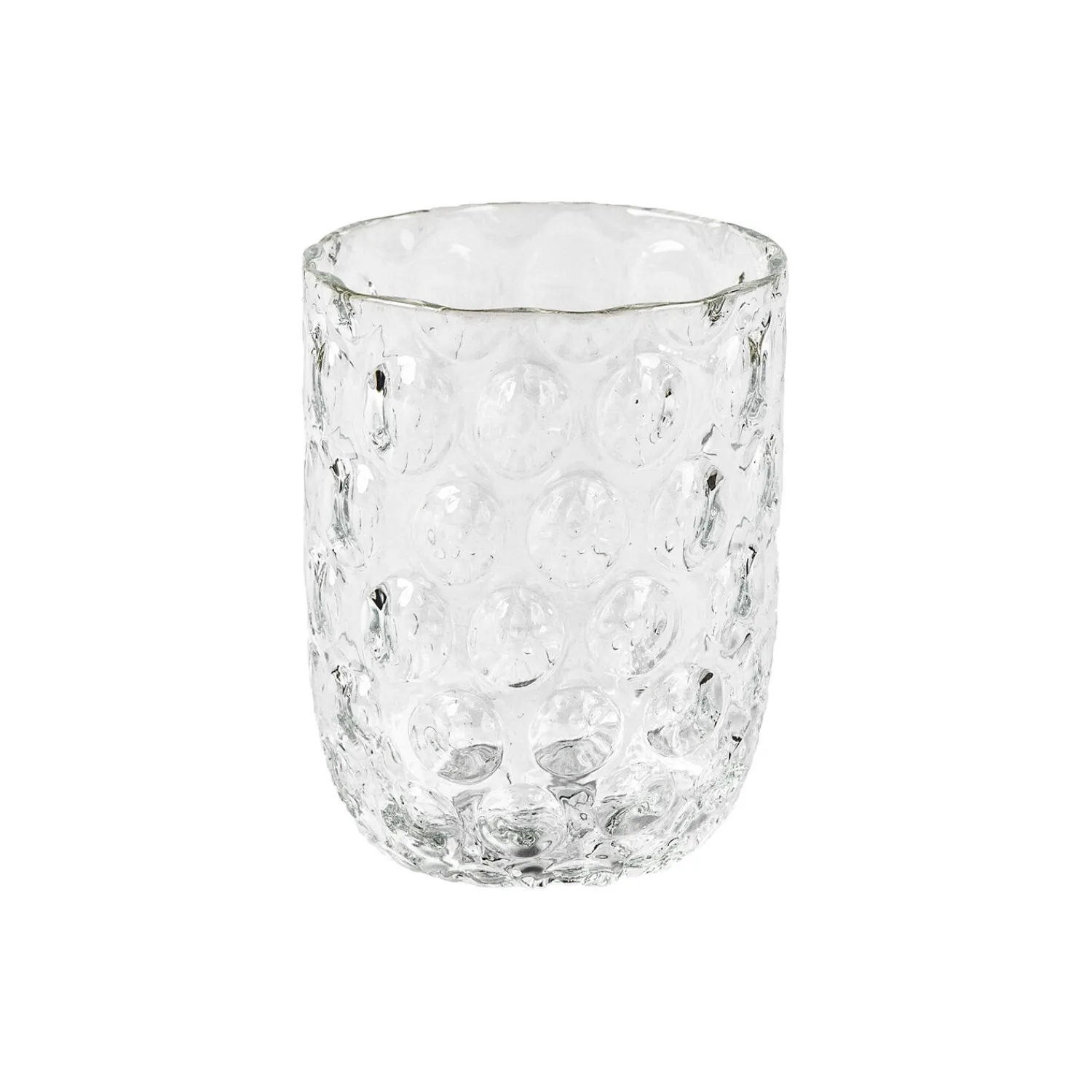 Vores Danish Summer Tumbler med et mønster af små dråber kan både indeholde kolde og lune drikke, bruges til skriveredskaber eller til opbevaring af småting. Hver enkelt glas er mundblæst og afrundet i træform, så selvom alle produkter har sin egen unikke og varierende farve og mønster, er alle glas samme størrelse.