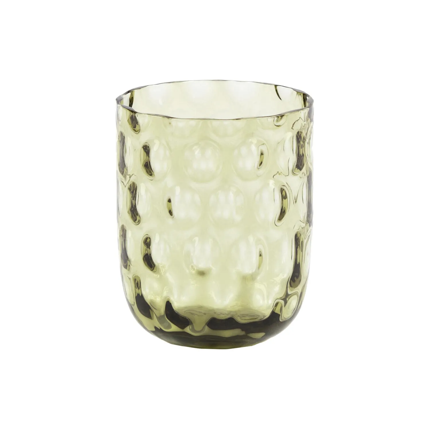 Vores Danish Summer Tumbler med et mønster af små dråber kan både indeholde kolde og lune drikke, bruges til skriveredskaber eller til opbevaring af småting. Hver enkelt glas er mundblæst og afrundet i træform, så selvom alle produkter har sin egen unikke og varierende farve og mønster, er alle glas samme størrelse.
