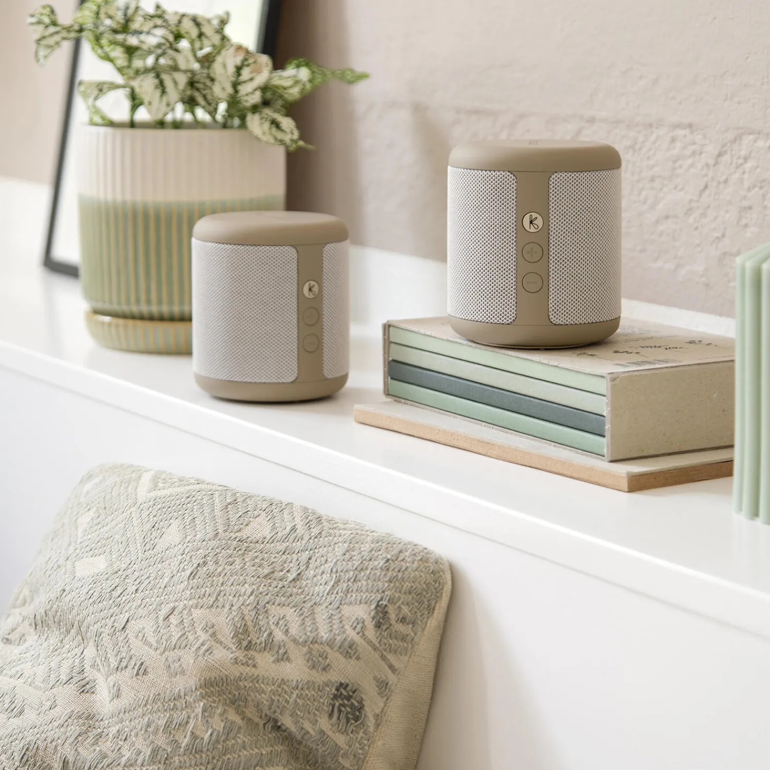 Karl er ikke bare en højttaler; den er et kraftværk i en lille pakke. Med 15W stereo får du fyldig og imponerende lyd, selvom den er kompakt og let at have med overalt. Den er skabt af 100% genanvendt stof, der er særligt designet til højttalere – så Karl er både miljøvenlig og utrolig trendy. Og med trådløs opladning og NFC-forbindelse gør Karl det nemt at holde musikken kørende, uanset hvor du er. Inde eller ude, Karl er din ideelle lydkilde. Gør dig klar til at opgradere både din stil og din playliste – Karl er klar til at skabe stemning hvor som helst!