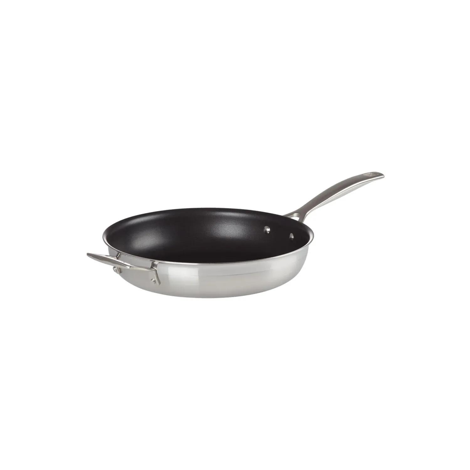 Med denne non-stickstegepande i 3-ply, rustfrit stål kan du trygt lave mad. Den er slidstærk og holdbar. Dette robuste, alsidige produkt er også perfekt til sundere madlavning på grund af non-stickbelægningen, som nemt slipper maden. Opbygningen i flere lag tilbereder maden nænsomt og jævnt og giver perfekte resultater.