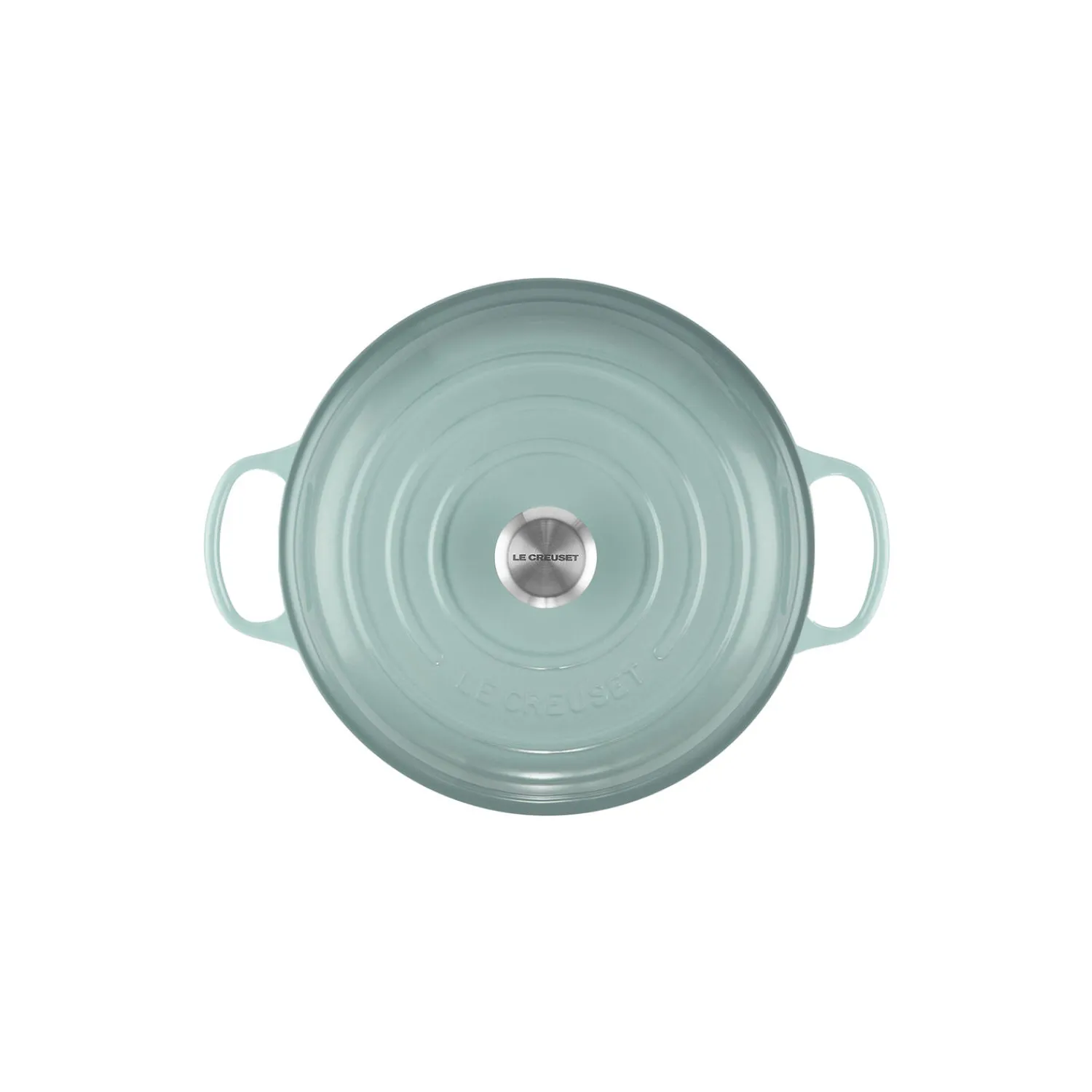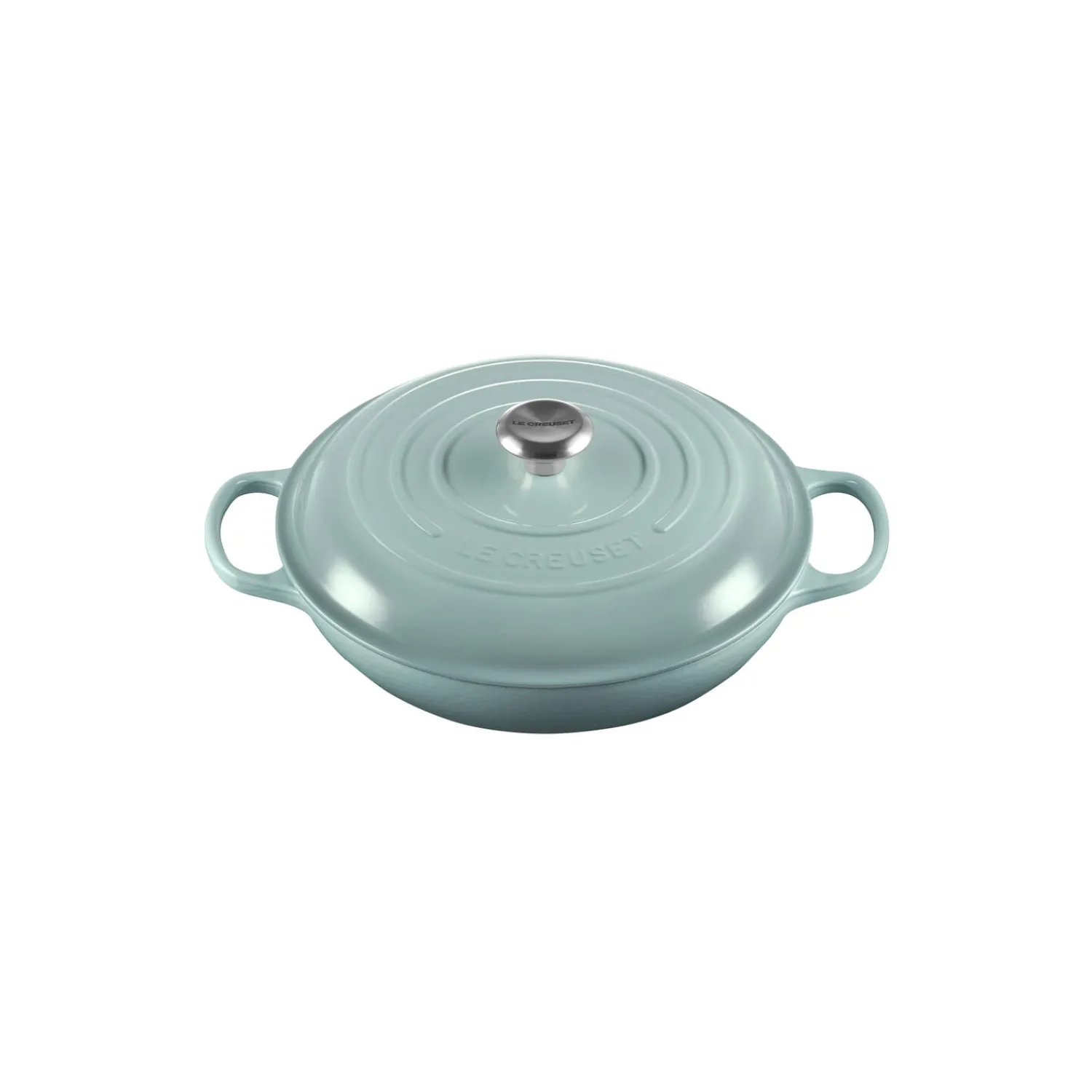 Vores støbejernsprodukter fremstilles på vores eget franske støberi og er vaskeægte køkkenlegender. Denne buffetgryde er ingen undtagelse. Den store, flade form og de lave kanter gør den perfekt til at brune kød og grøntsager, simre gryderetter, lynstege og bage. Den karamelliserer maden effektivt, så du får velsmagende resultater. Låg med rustfri stål- eller fenolknop tåler opvaskemaskine. Låg med guld-, iriserende-, kobber- og sort nikkelknop skål håndvaskes for at bevare deres finish. Egnet til følgende varmekilder: ovnens grill, ovn, elektrisk, keramisk kogeplade, gas og induktion.
